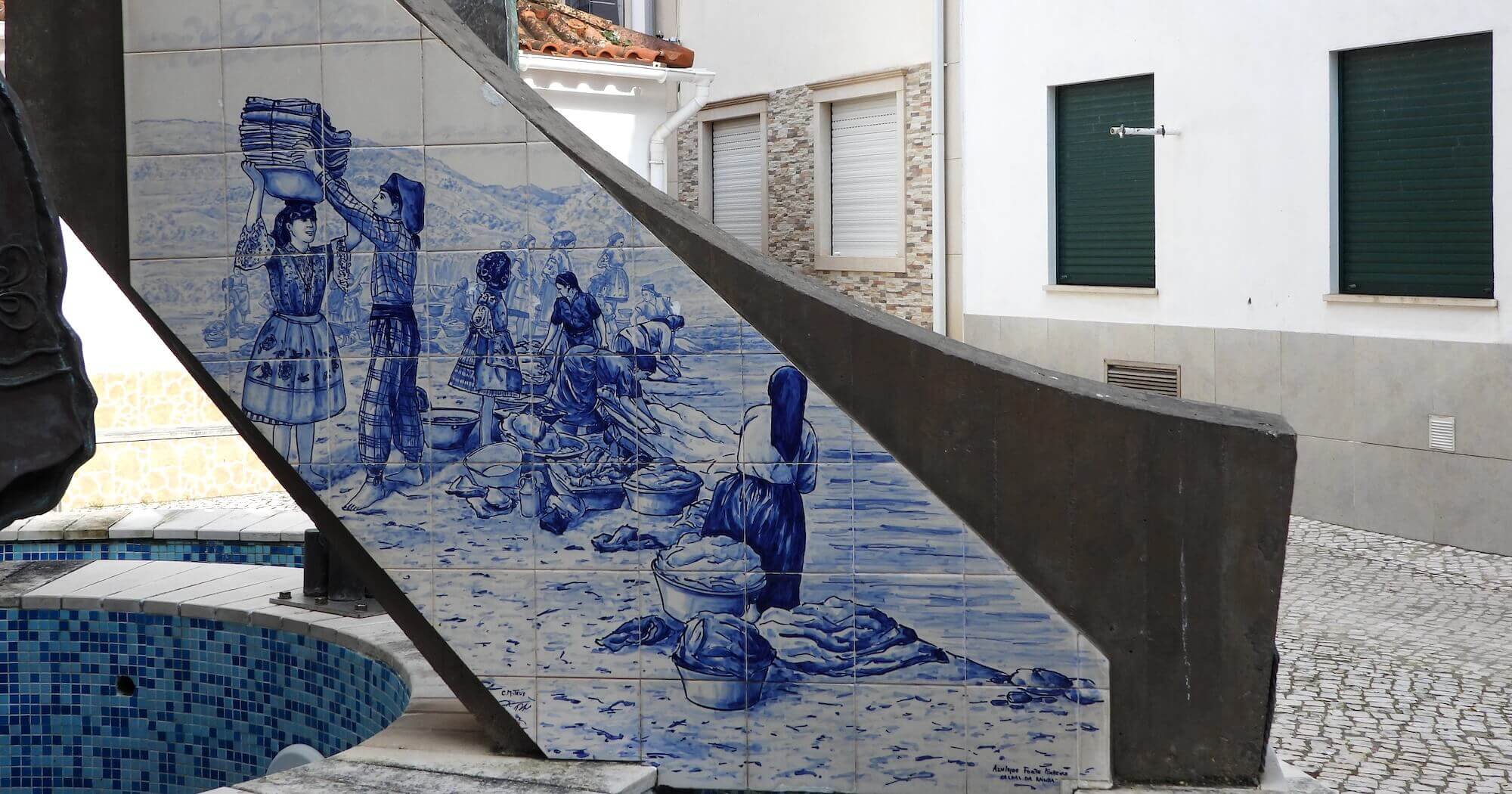- Panier sur la tête - La pêcheuse porte un panier, symbole de la routine quotidienne et des fardeaux des femmes de Nazaré, qui subvenaient aux besoins de leur famille en vendant du poisson fraîchement pêché et des fruits de mer en conserve.