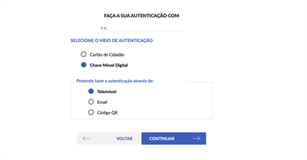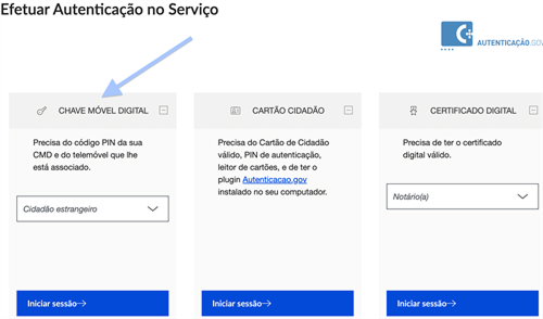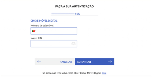 Utilisation de la clé mobile numérique (Chave Móvel Digital) - première option. Veuillez voir ci-dessus comment obtenir un Chave Móvel Digital, si vous n'en avez pas déjà un.