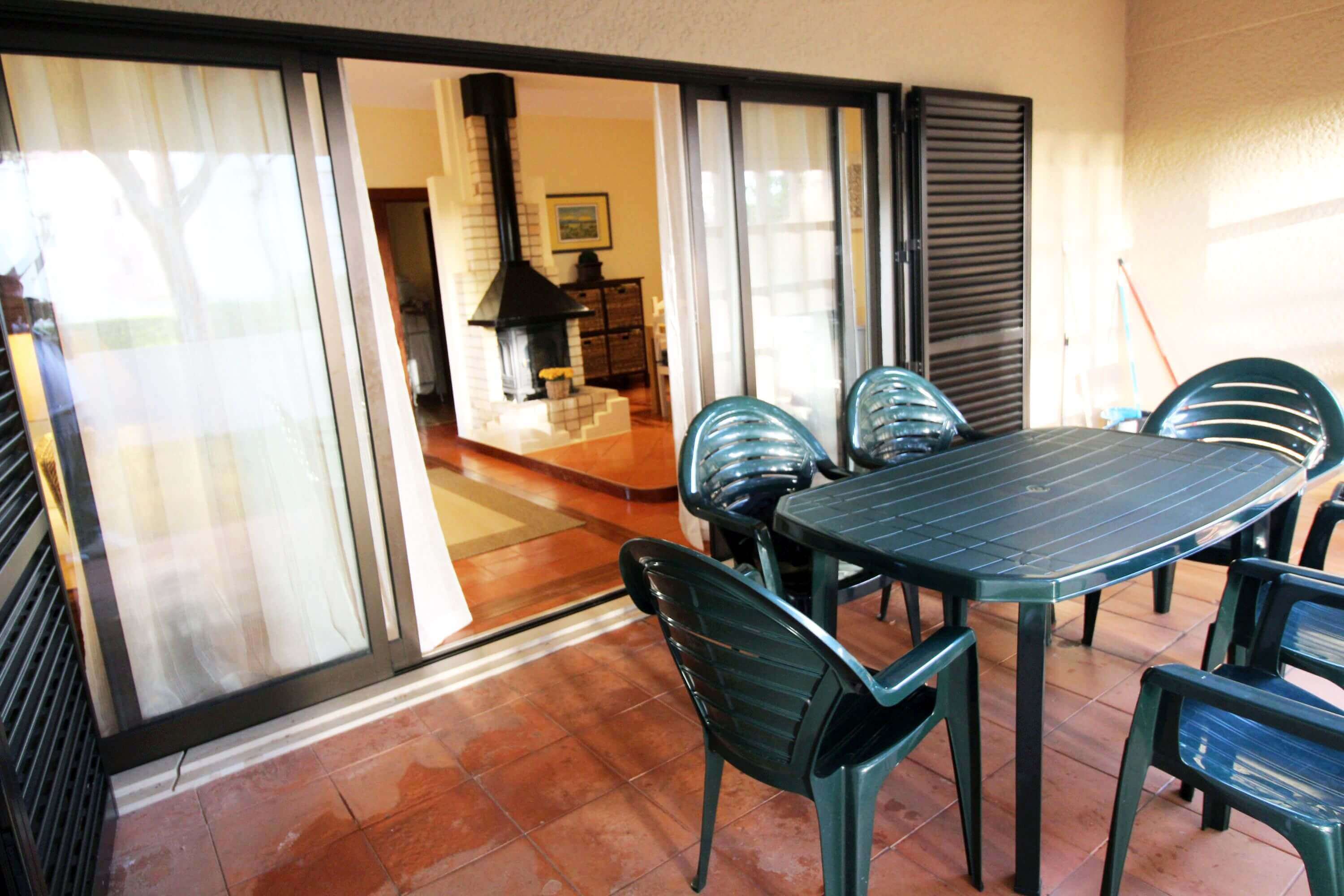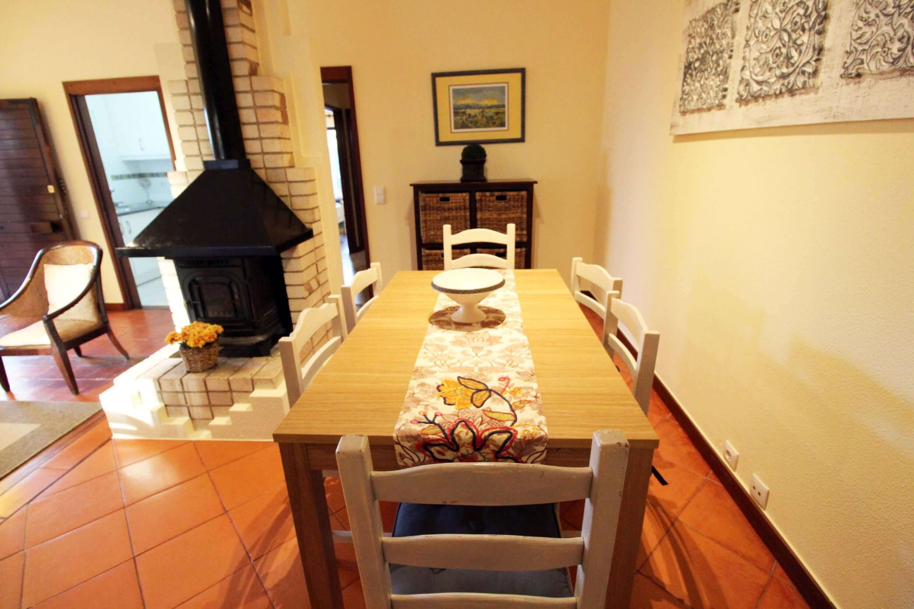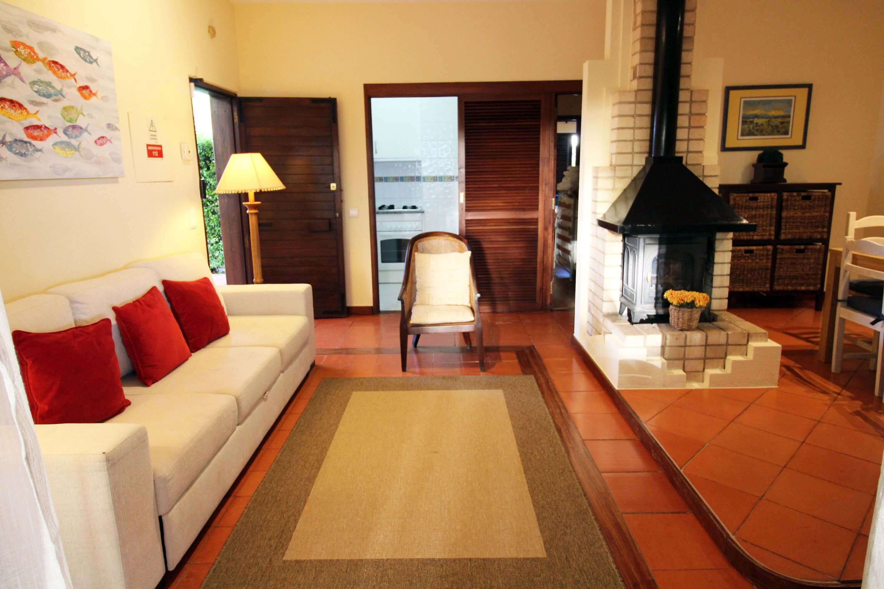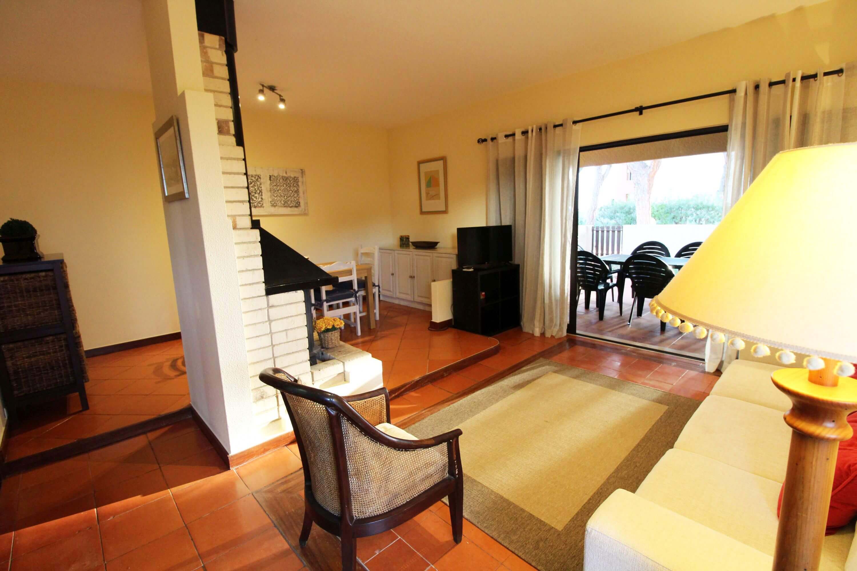 The apartment has a living room with dining table for 6 people, TV, wifi, fireplace, double sofa bed and leads to a patio where you'll find outdoor furniture for outdoor dining.