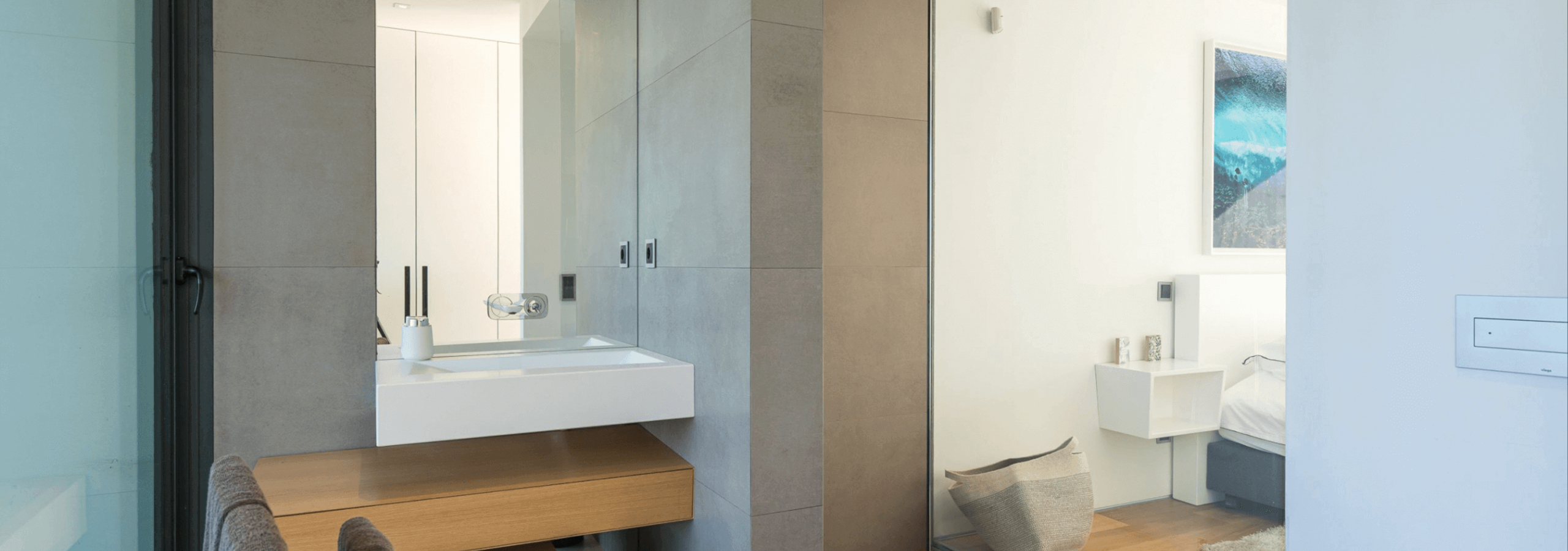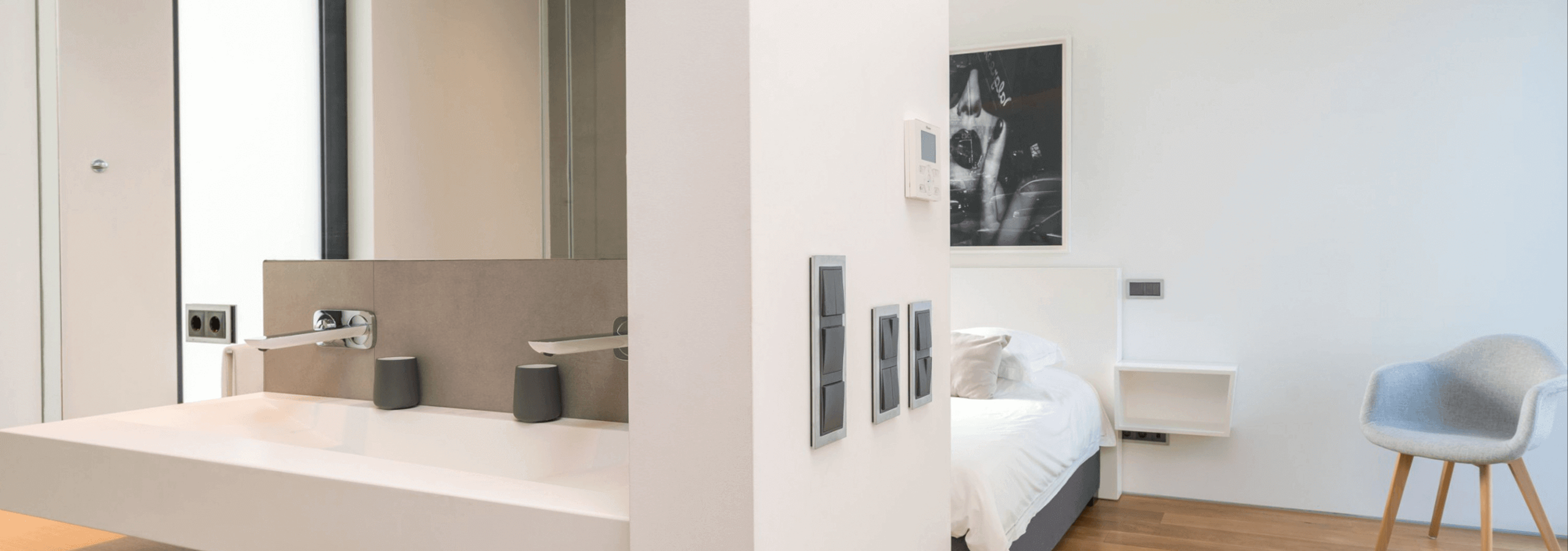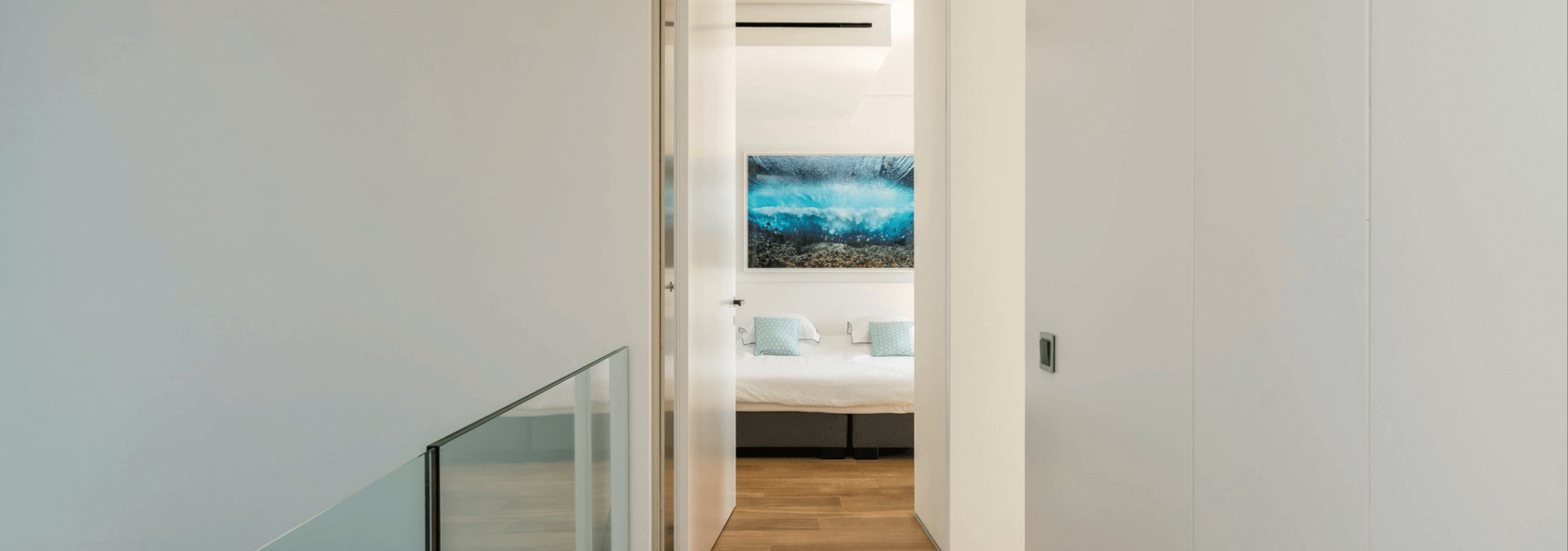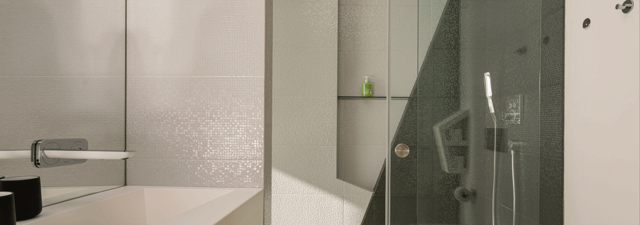 All rooms have a special feature; all shower areas have a glass wall, facing the interior of the room.