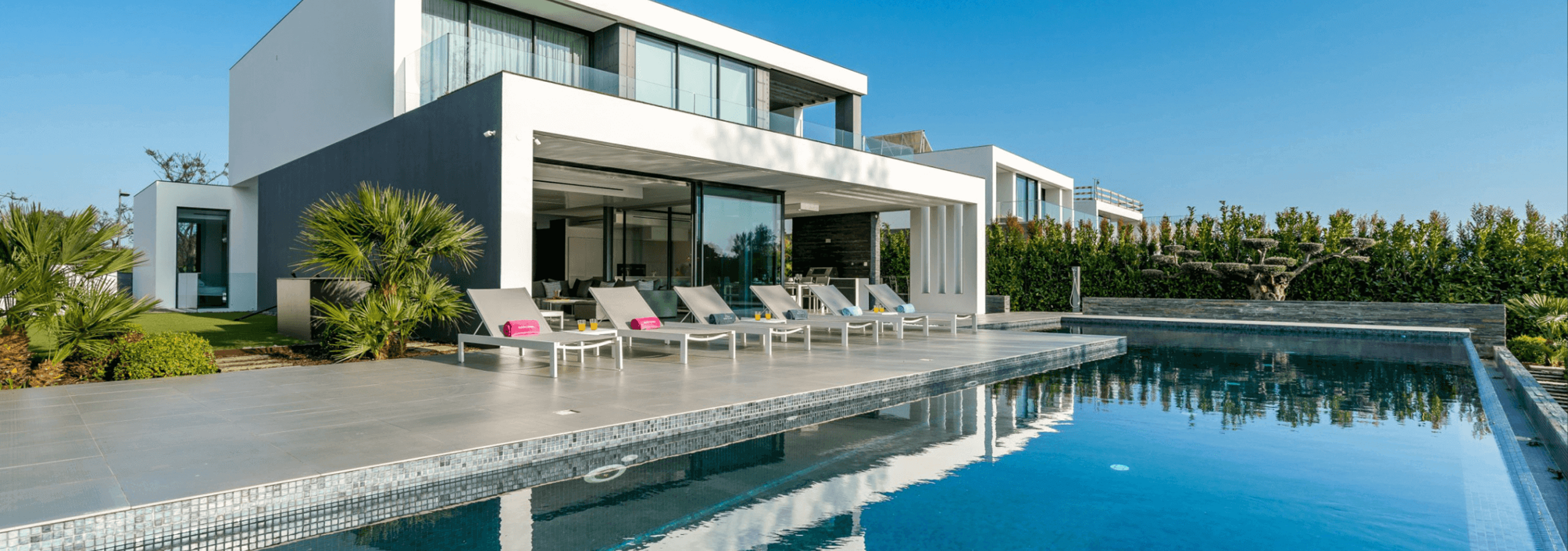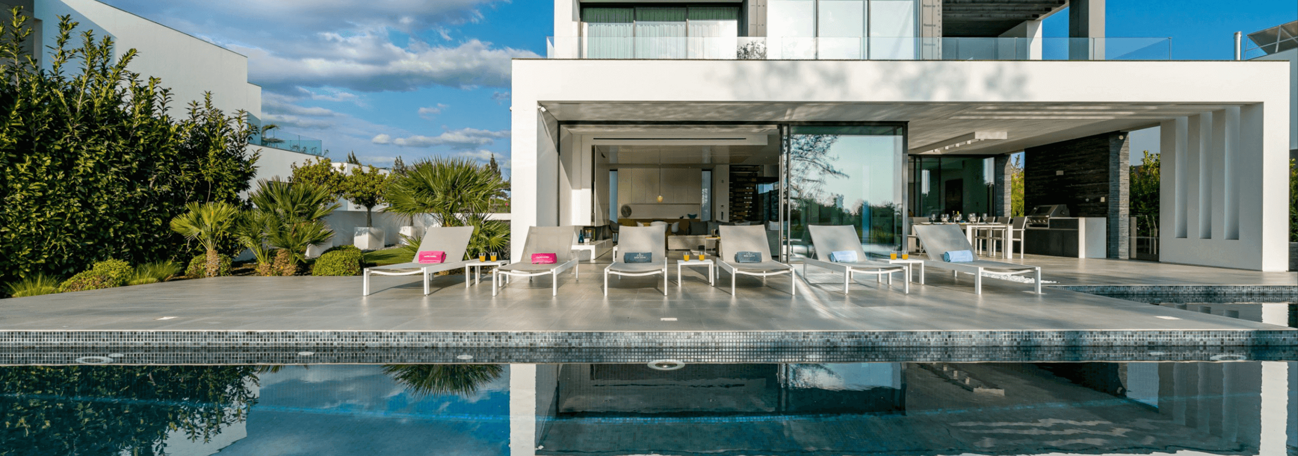 The villa has 5 bedrooms, all en-suite, and 7 bathrooms and can accommodate a maximum of 10 people.
