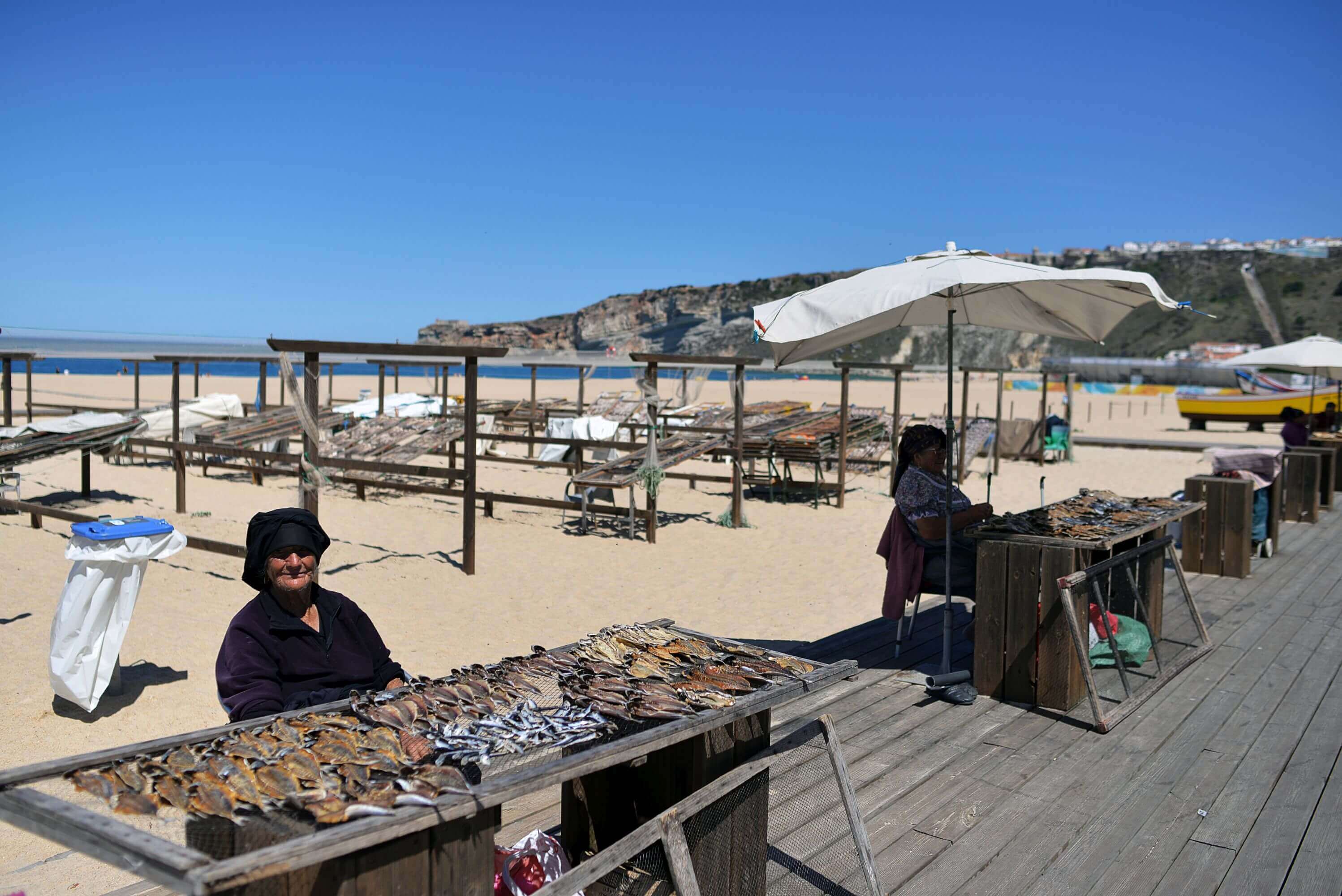 Located on the picturesque coastline of Portugal, Nazare is a charming seaside town with a rich history and a population of approximately 13,000 people. The town has long been sustained by the fishing industry, which visitors can still witness today with the numerous lines of sun-drying fish along the beach.