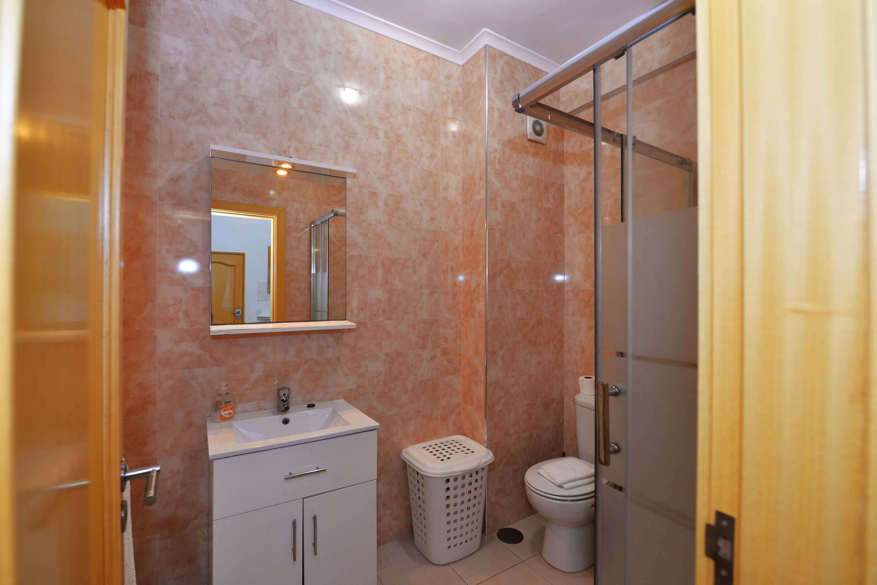 - Bathroom No. 1 with shower, sink and toilet