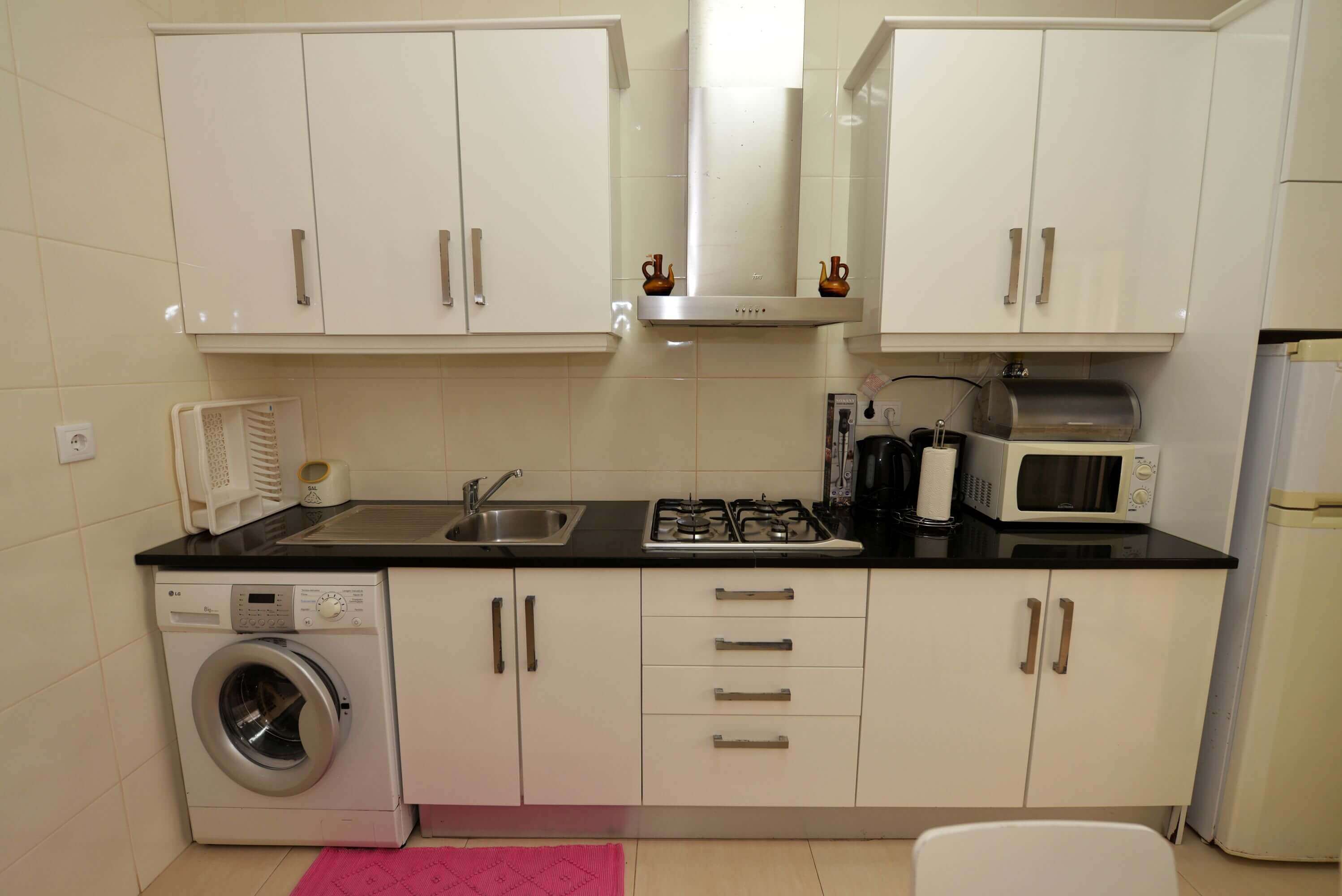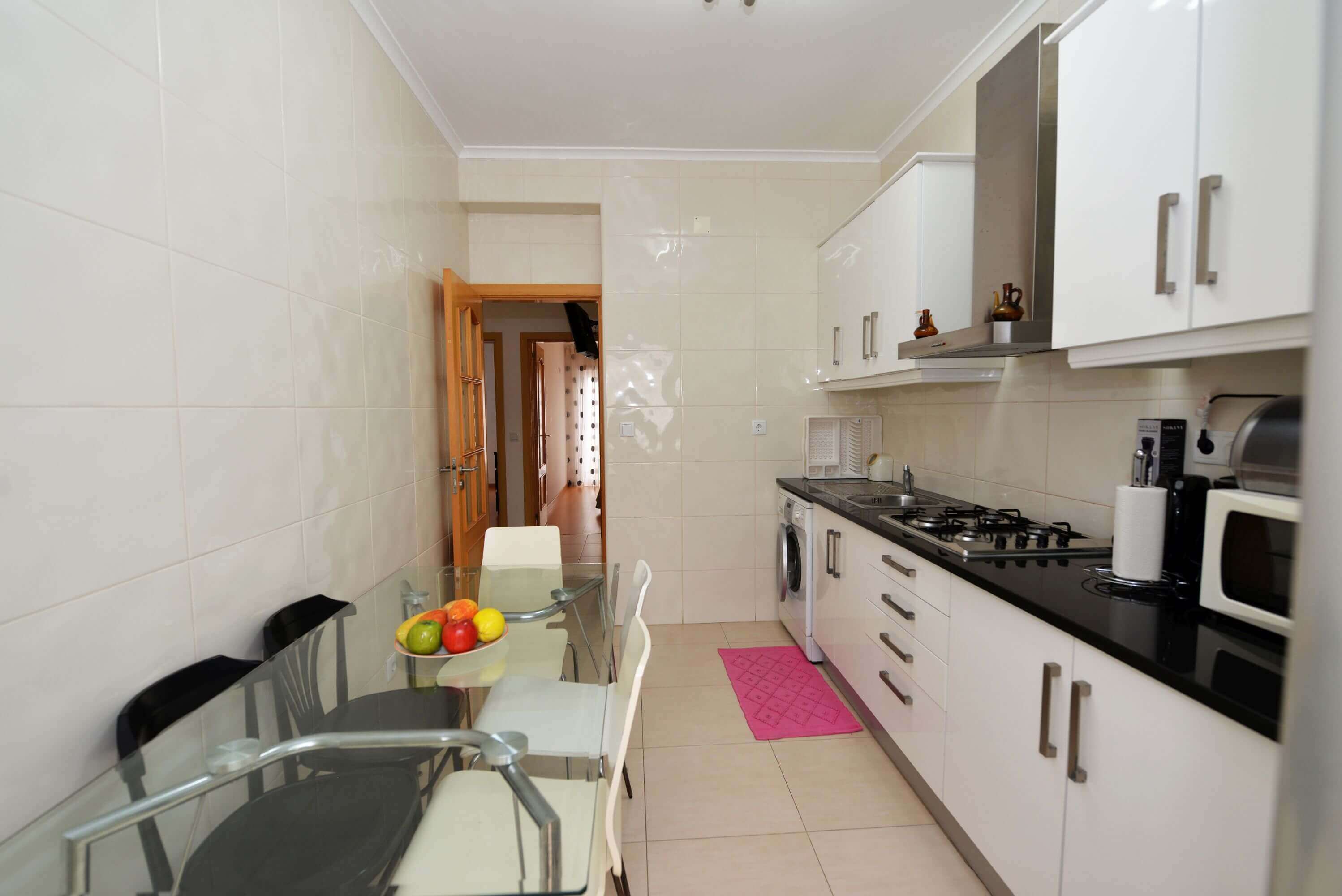 Step inside to discover a small entrance lounge area with Cable TV and Wifi, where you can kick back and unwind after a long day of exploring Nazaré. The fully equipped kitchen boasts everything you need to whip up delicious meals, whether you're cooking up a feast for the whole group or just a quick snack.