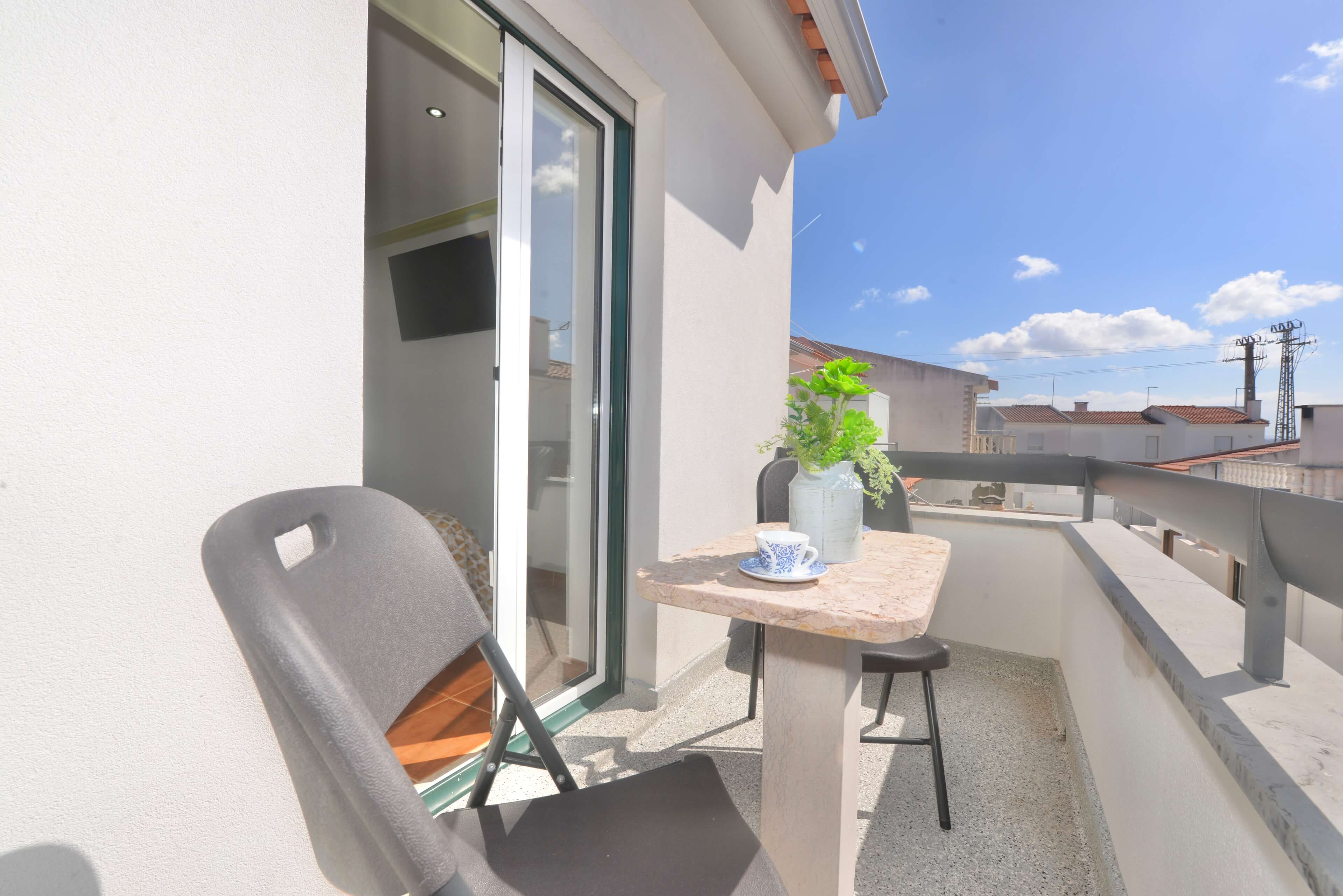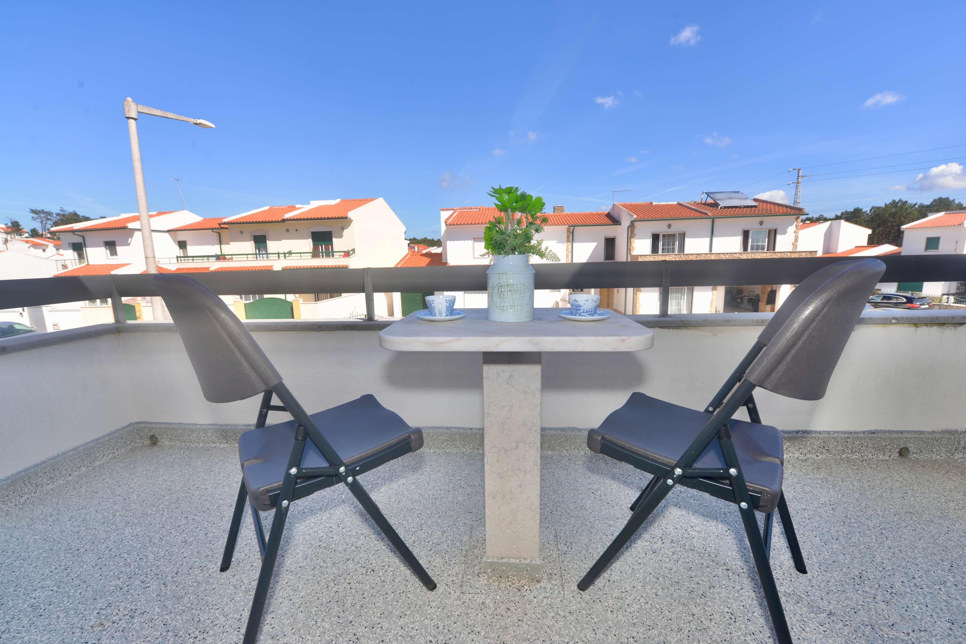 Both balconies include a small table and chairs, ideal for enjoying the fresh coastal air.