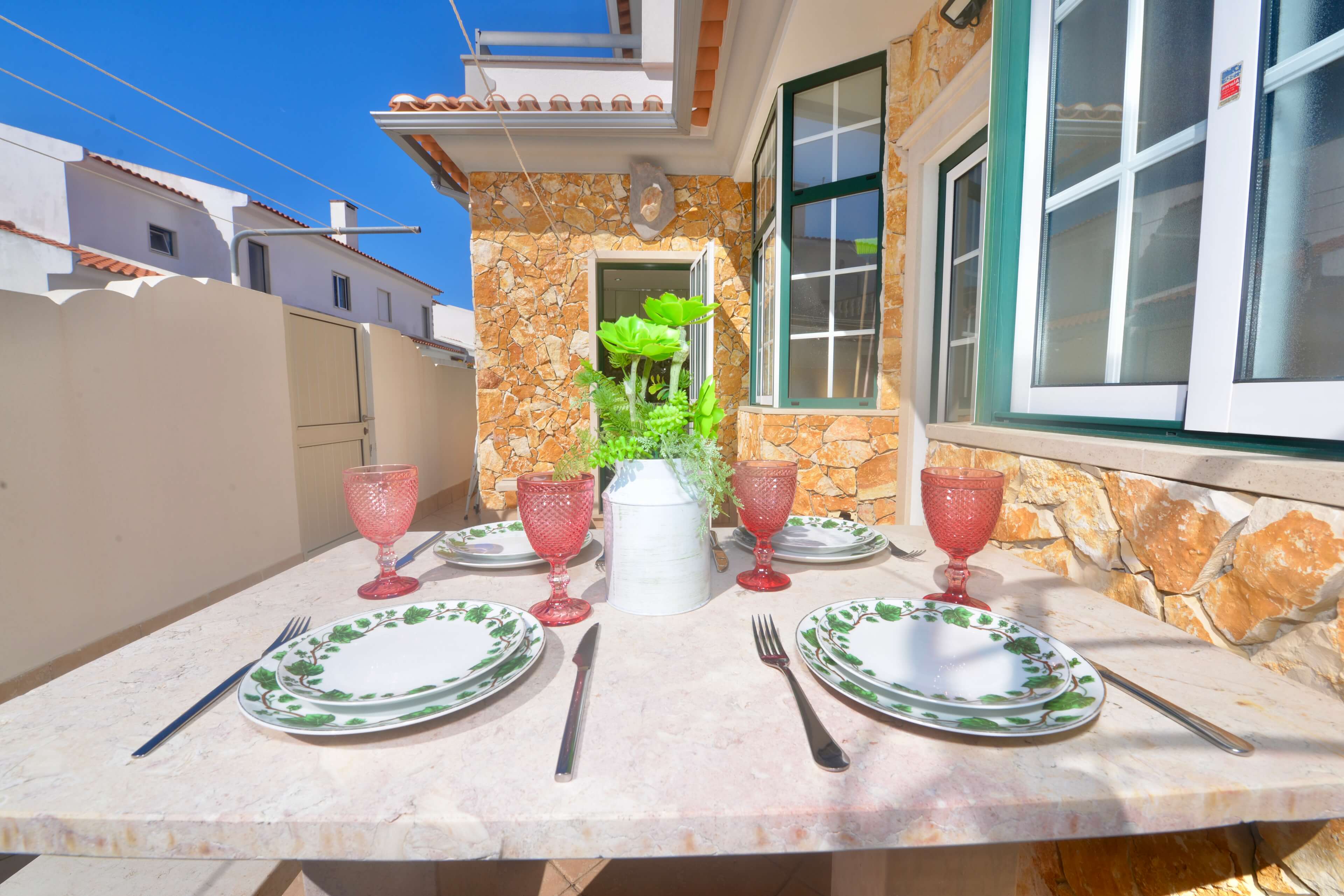 On the ground floor, the house opens onto a pleasant outdoor terrace, offering additional space to relax and dine outdoors. A great spot to enjoy Nazaré's mild evenings.