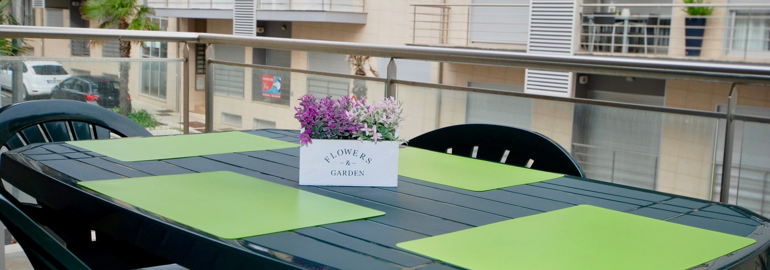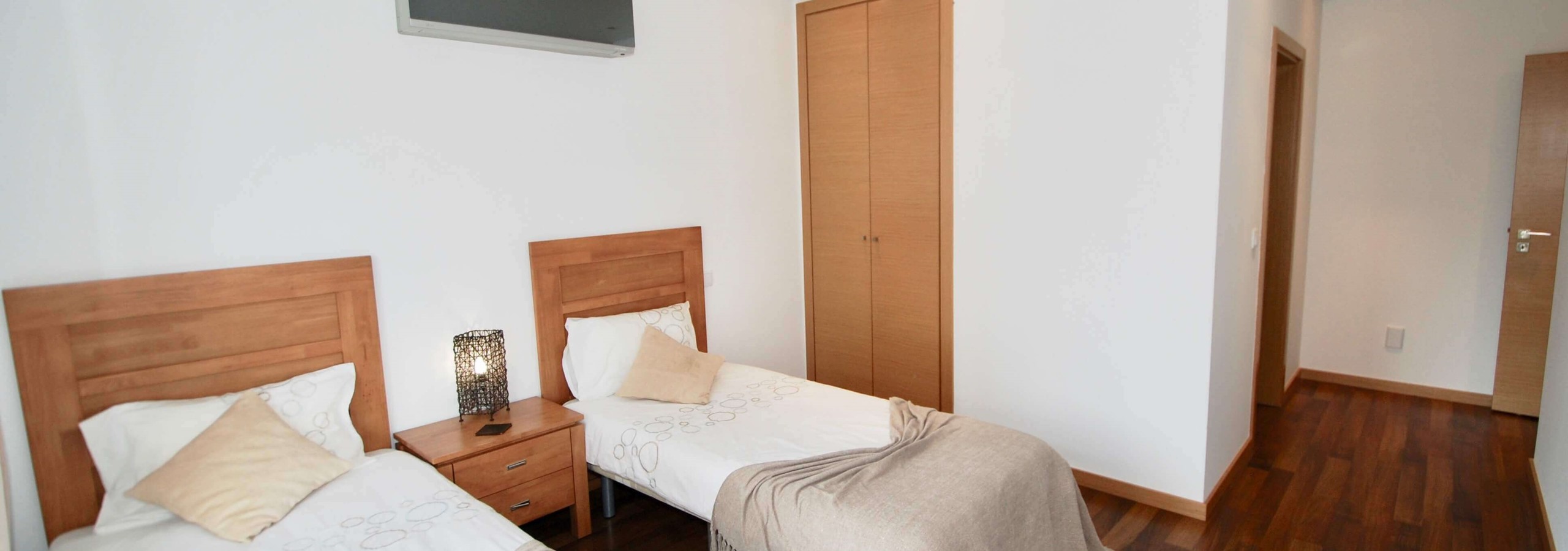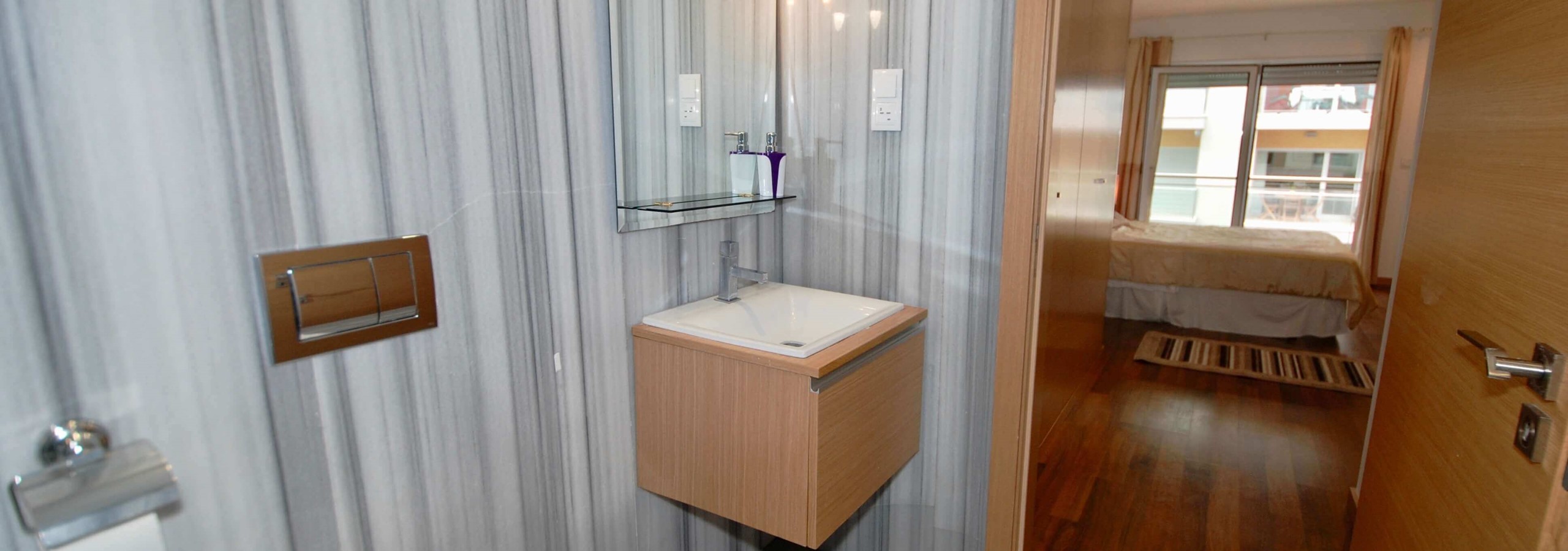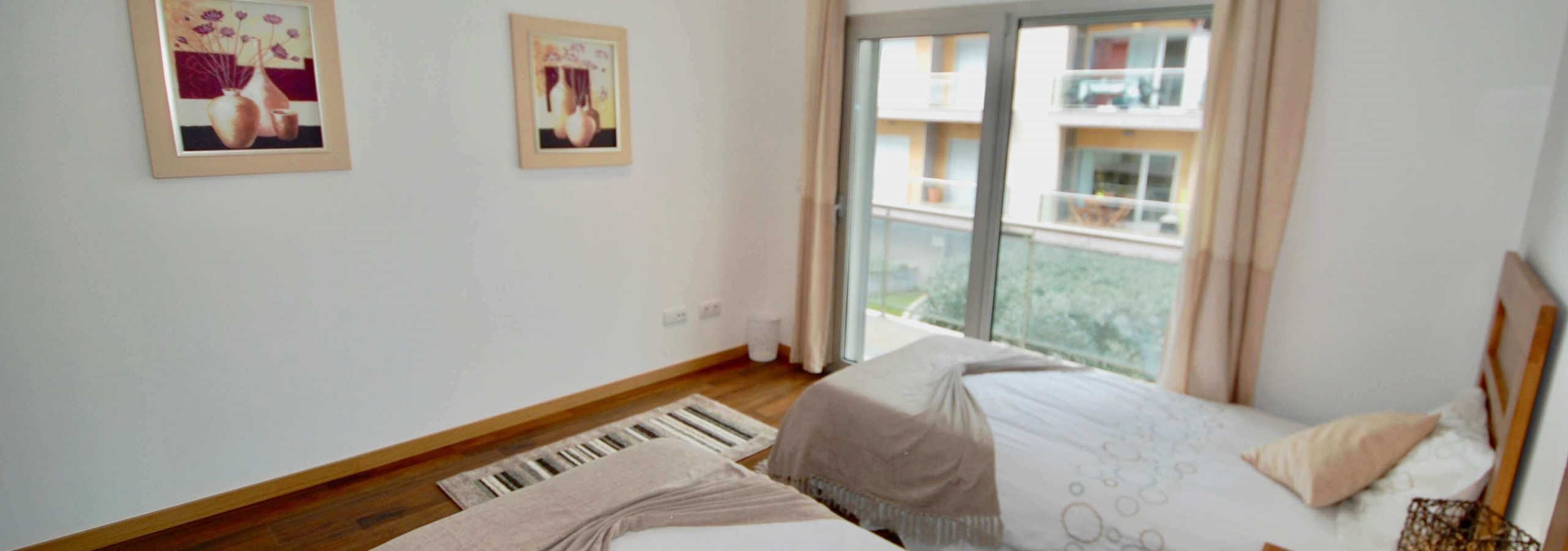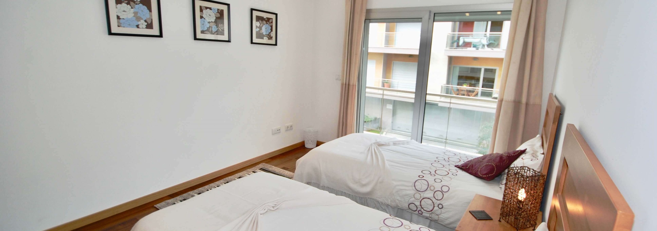 There are 3 bedrooms, 1 double and 2 twin bedrooms, so the property can sleep up to 6 guests. All bedrooms are ample and have built-in closets. The master bedroom has a king sized bed and a bathroom with bath and separate shower cubical. The first twin bedroom has 2 individual beds that can be pulled together to form a larger bed and has a bathroom with bath with shower over. Finally, the second twin room has also 2 individual beds that can be pulled together. From all 3 bedrooms you have access to the second balcony of the apartment where there is a table and 2 chairs for relaxing breakfasts outside. There is a third bathroom in the apartment with shower cubical, located in the main living area.