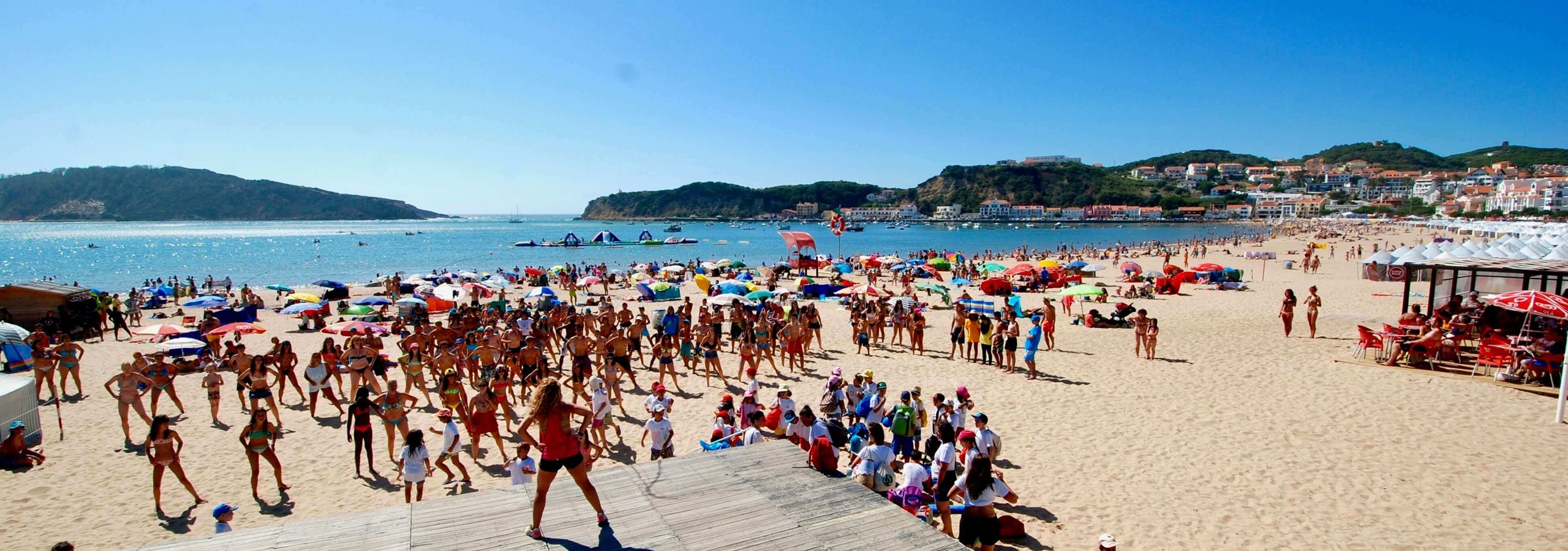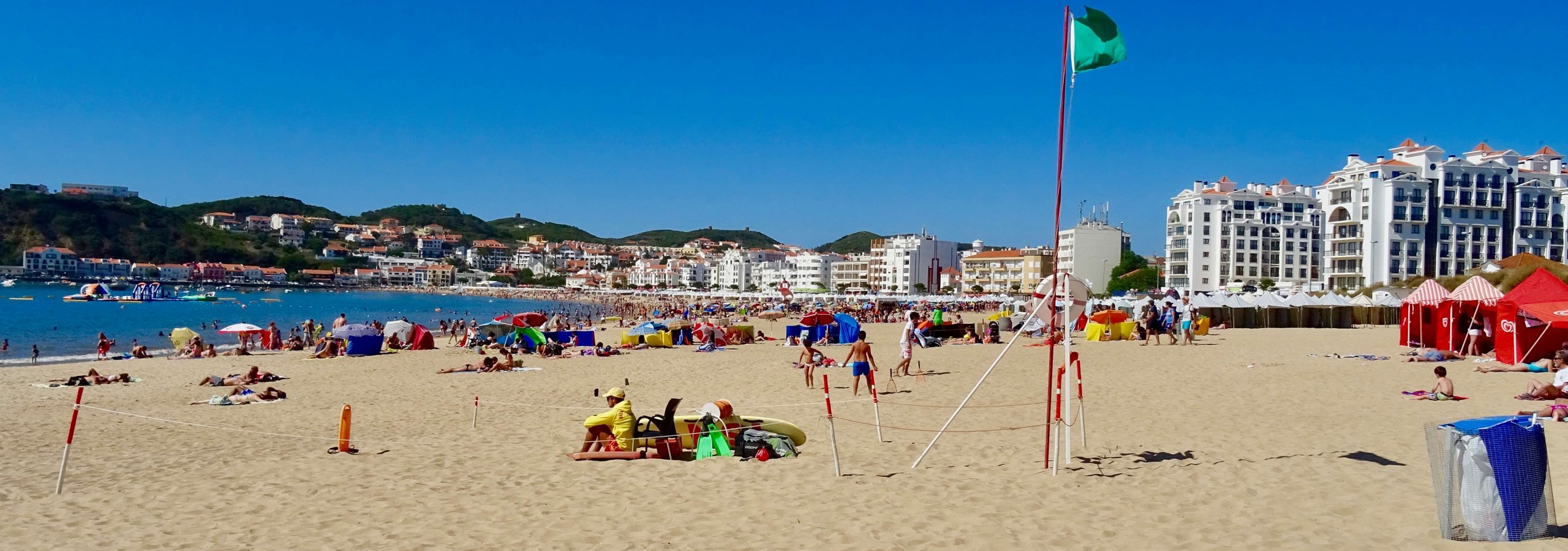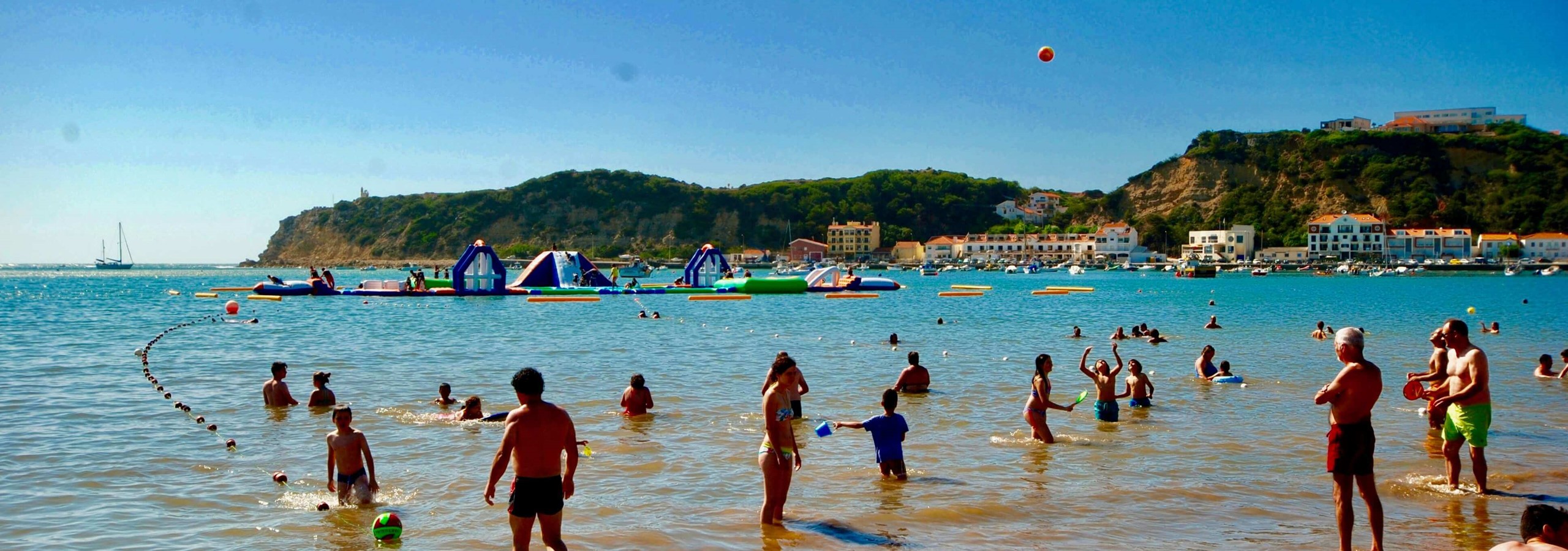 São Martinho do Porto is a prestigious destination that appeals primarily to families and couples. The beach offers many water sports activities, including a giant inflatable playground on water. Additionally, there is a complimentary beachside playground situated in a picturesque grassy area along the bay.