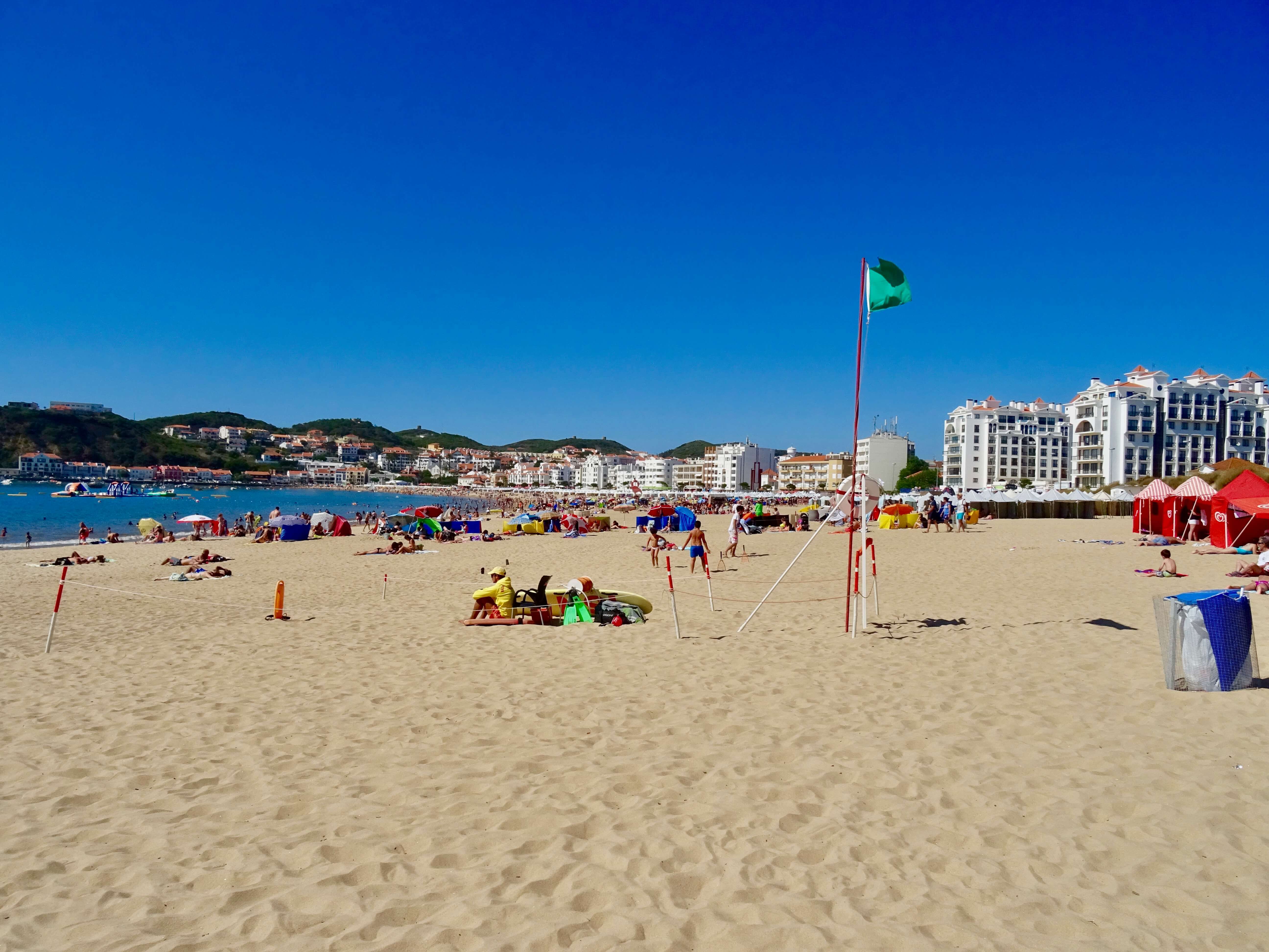 São Martinho do Porto is a prestigious destination that appeals primarily to families and couples. The beach offers many water sports activities, including a giant inflatable playground on water. Additionally, there is a complimentary beachside playground situated in a picturesque grassy area along the bay.