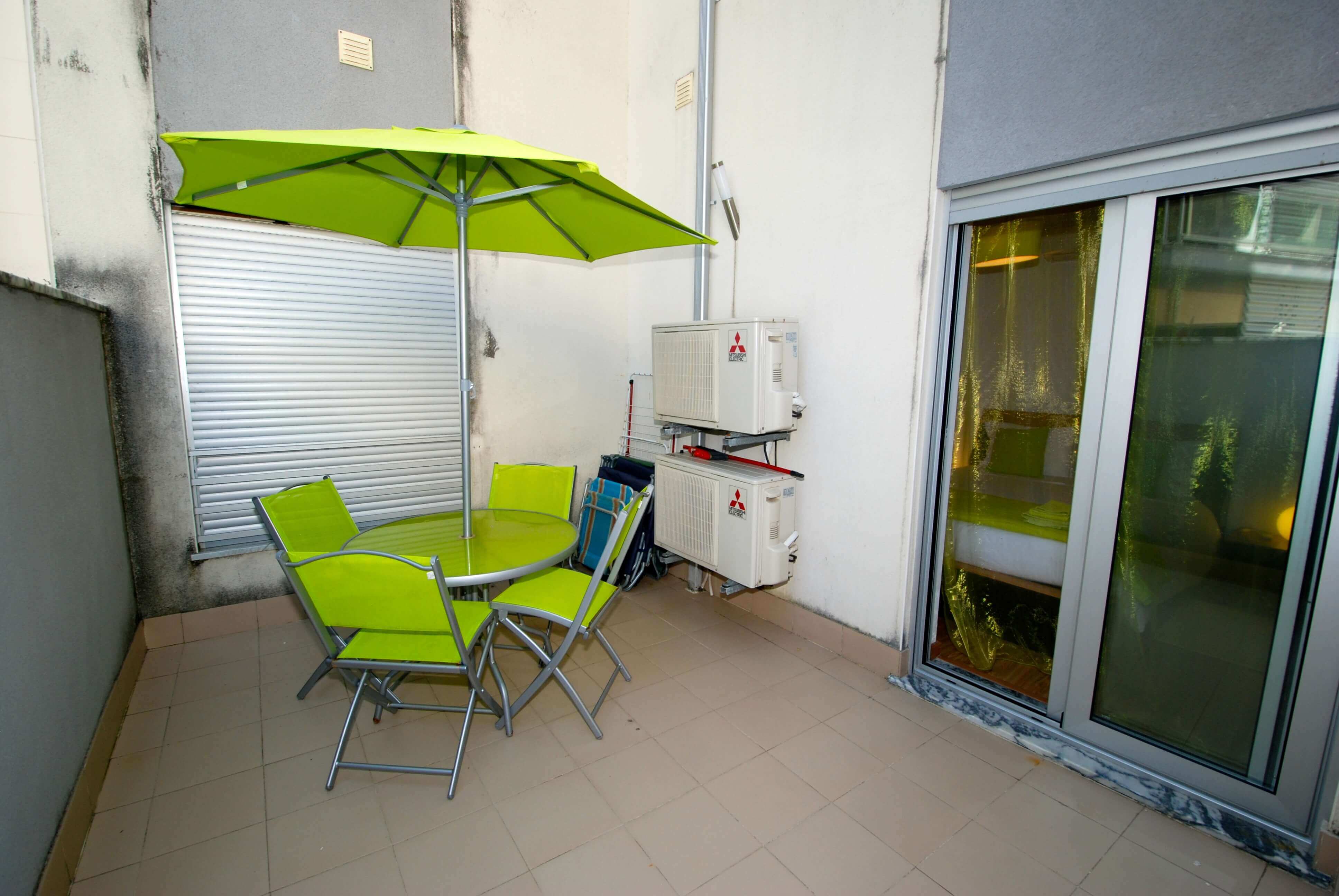 Perfect for the family abroad, this apartment has its own private courtyard with a table, outdoor seating for 4 and 2 sun-loungers. Please know that you have to cross a road to access the pool and playground area.