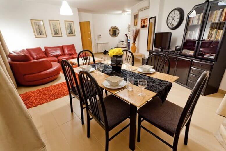 Kitchen well equipped. Short walk to beach via train station. Good size rooms. Photos in this advert do not have the correct views. Trains come in daily, not too noisy, but noticeable. View from balconies includes the train tracks. Bathrooms are very small, picture here is out of proportion. Jacuzzi not working. Key needed to enter and exit swimming pool area. Not convenient. I would not suggest up to 8 sleep, would be crowded. Bay nice for small children, some good, inexpensive food.