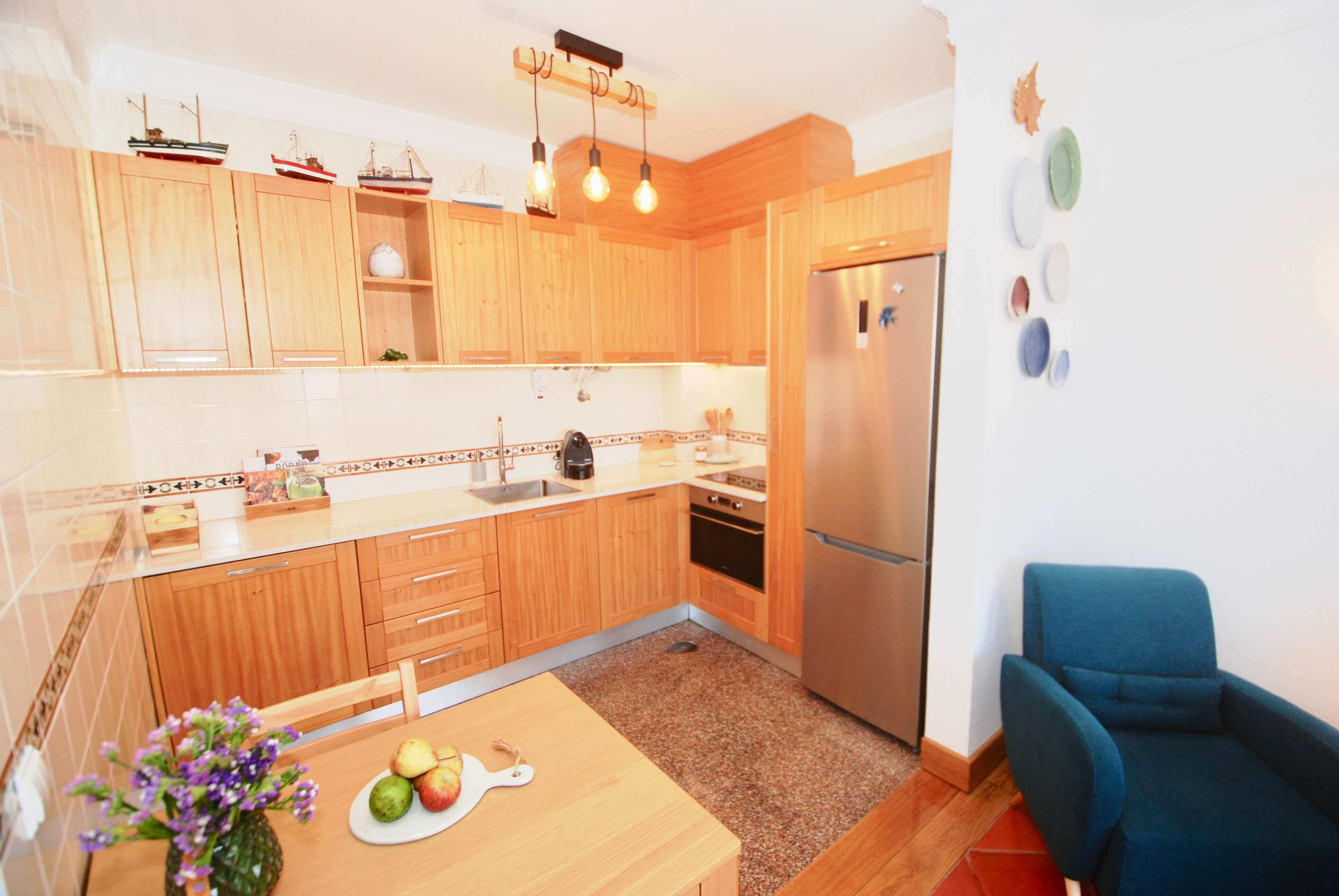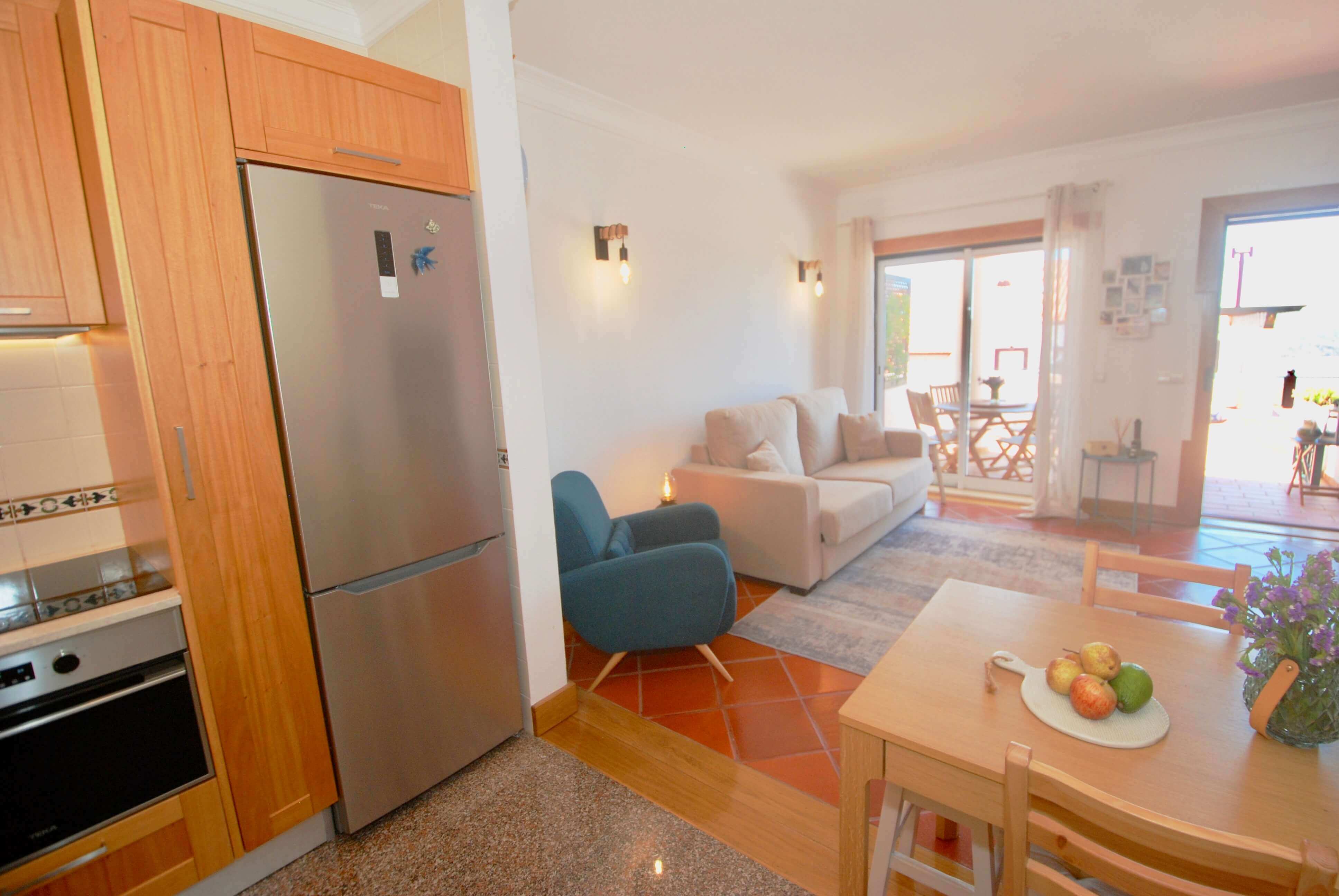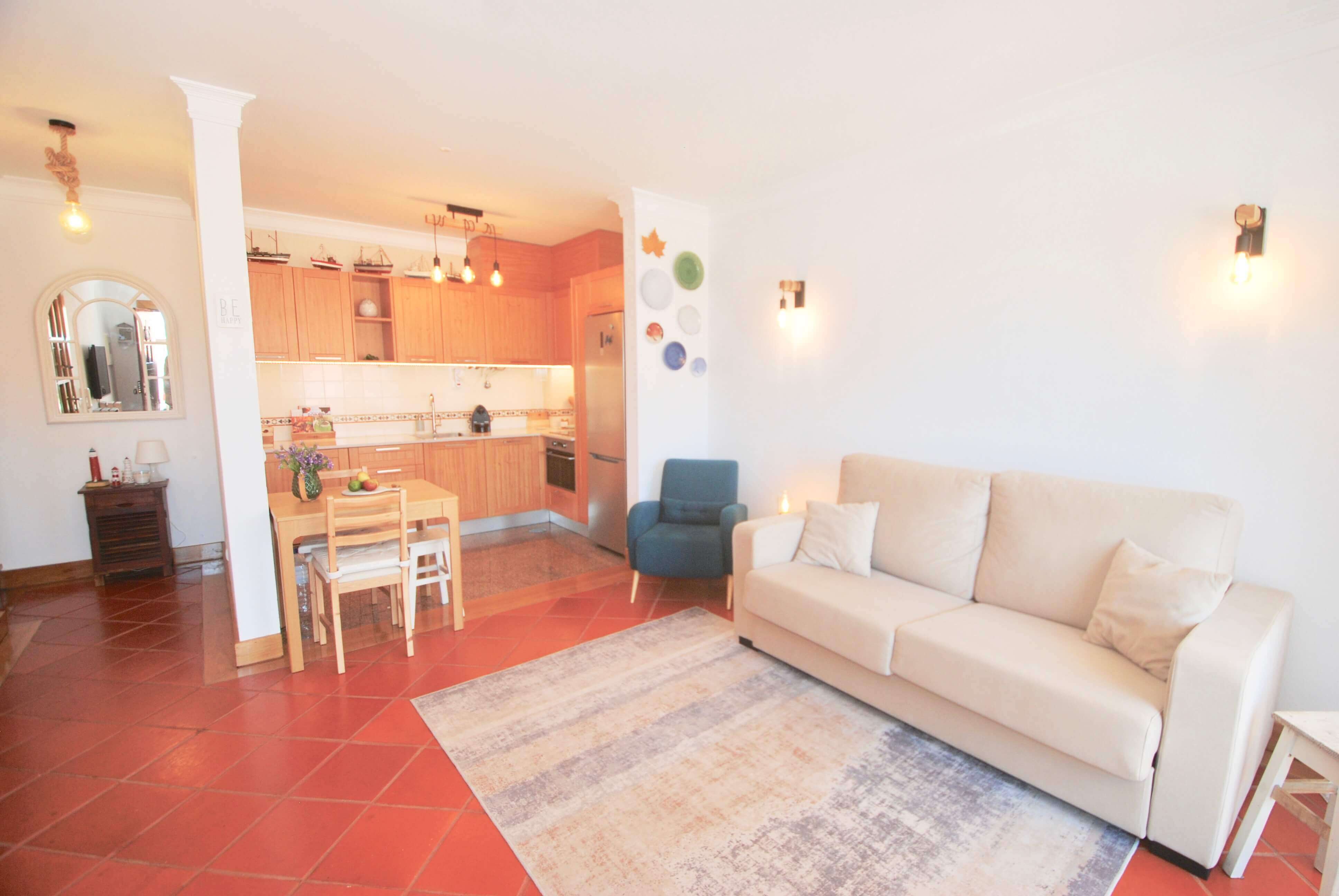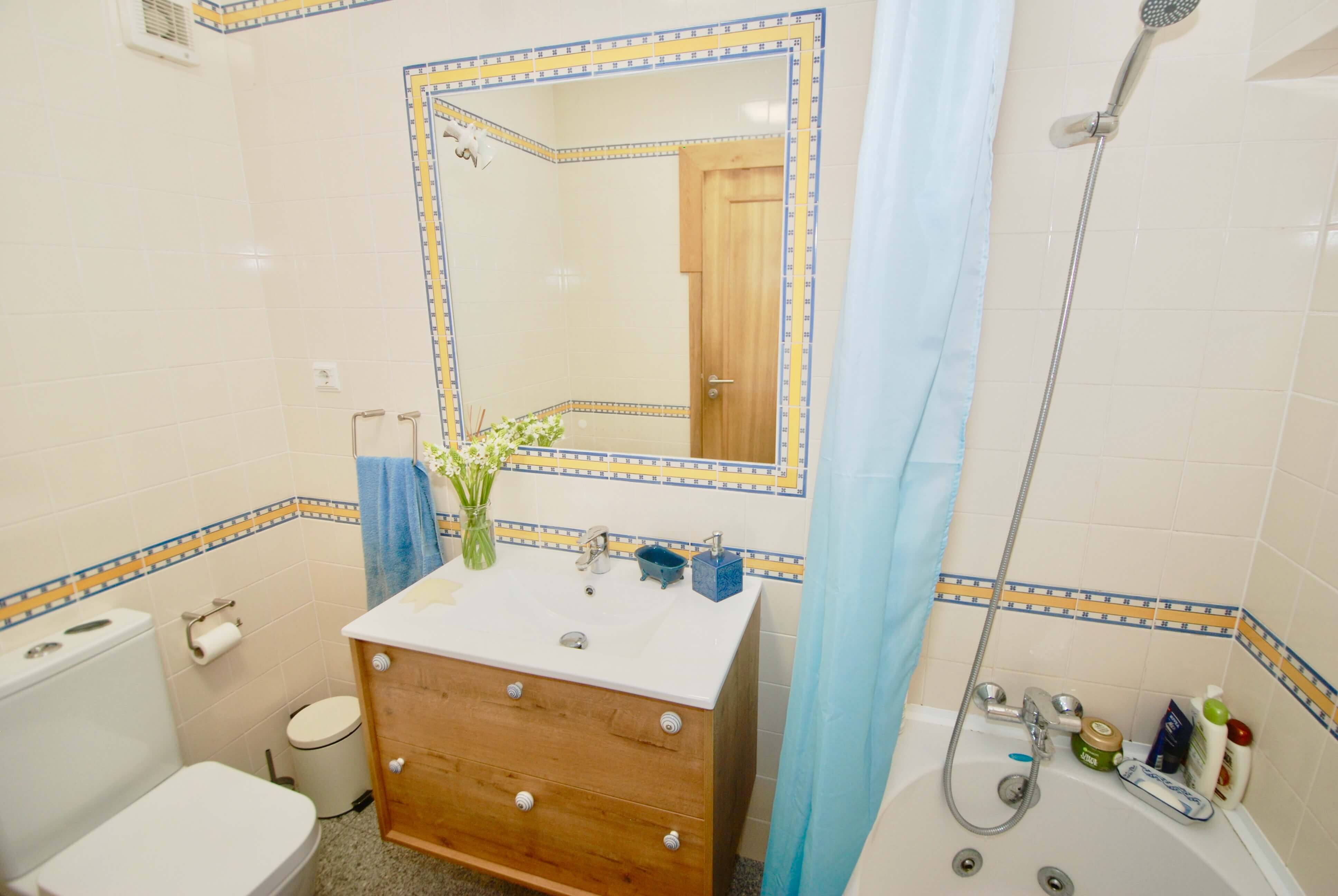 Inside, the property is practical and stylish, offering all the comforts of a home. The open plan living area is composed of a very well equipped kitchen with dining area and a comfortable lounge with cable TV, free Wi-Fi and a bluetooth speaker which you can use with your phone. This area opens up to the main terrace where you can enjoy dining outside or simply relax under the sun. The owner has kindly provided 2 sun loungers which you can use in your private terrace, in the communal gardens or take them with you to one of the 3 pools of the complex.