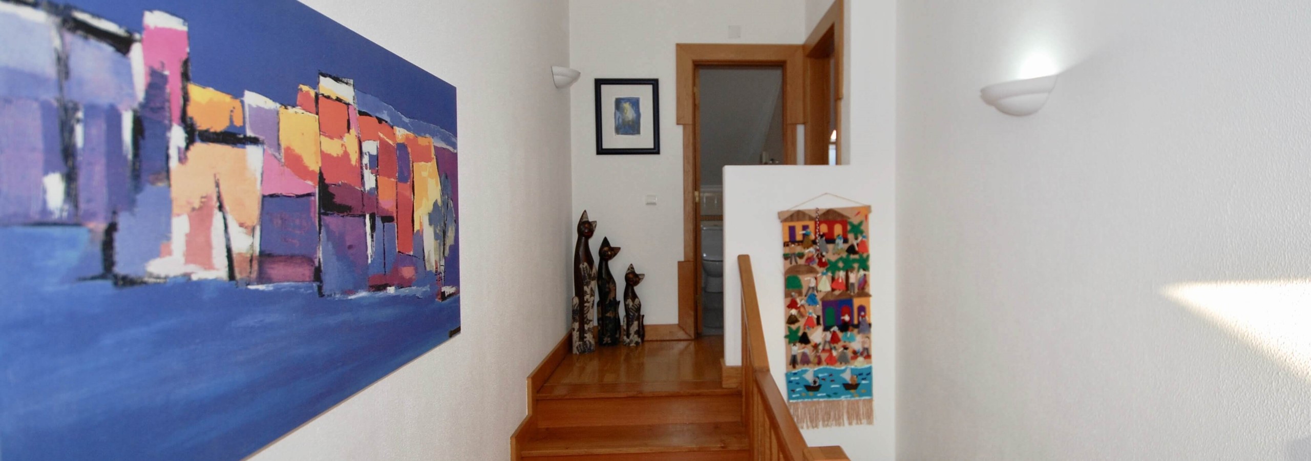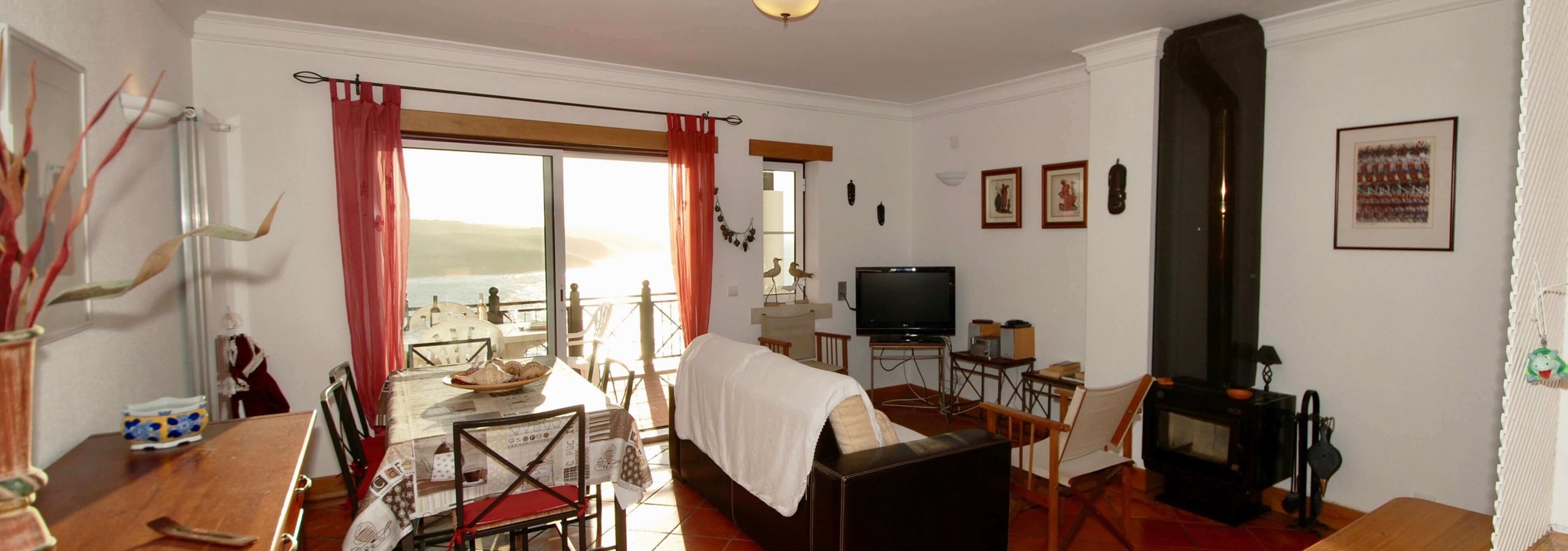 The extensive lounge leads on to a South-facing balcony with incredible views both out over the ocean and towards the bay of São Martinho do Porto.