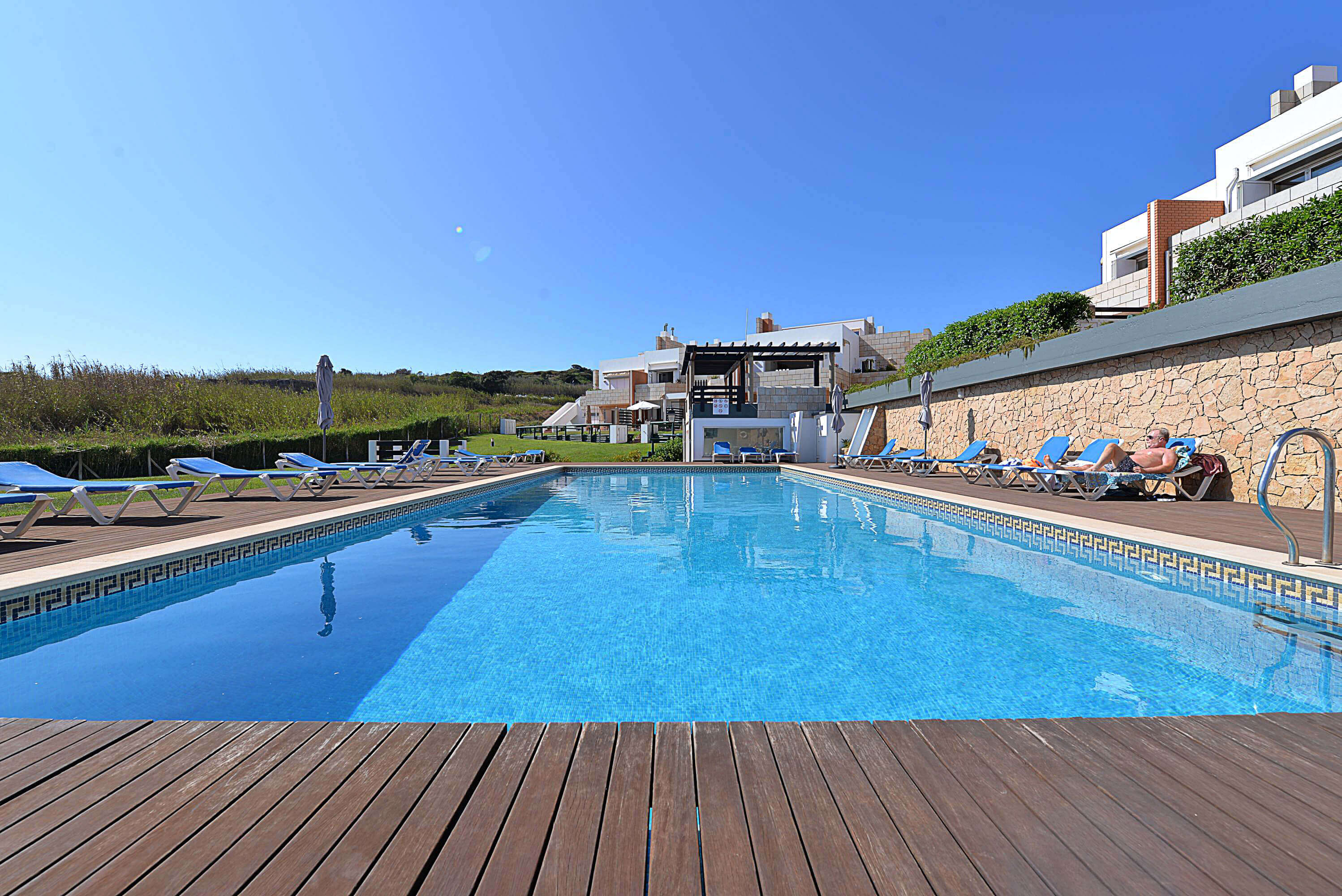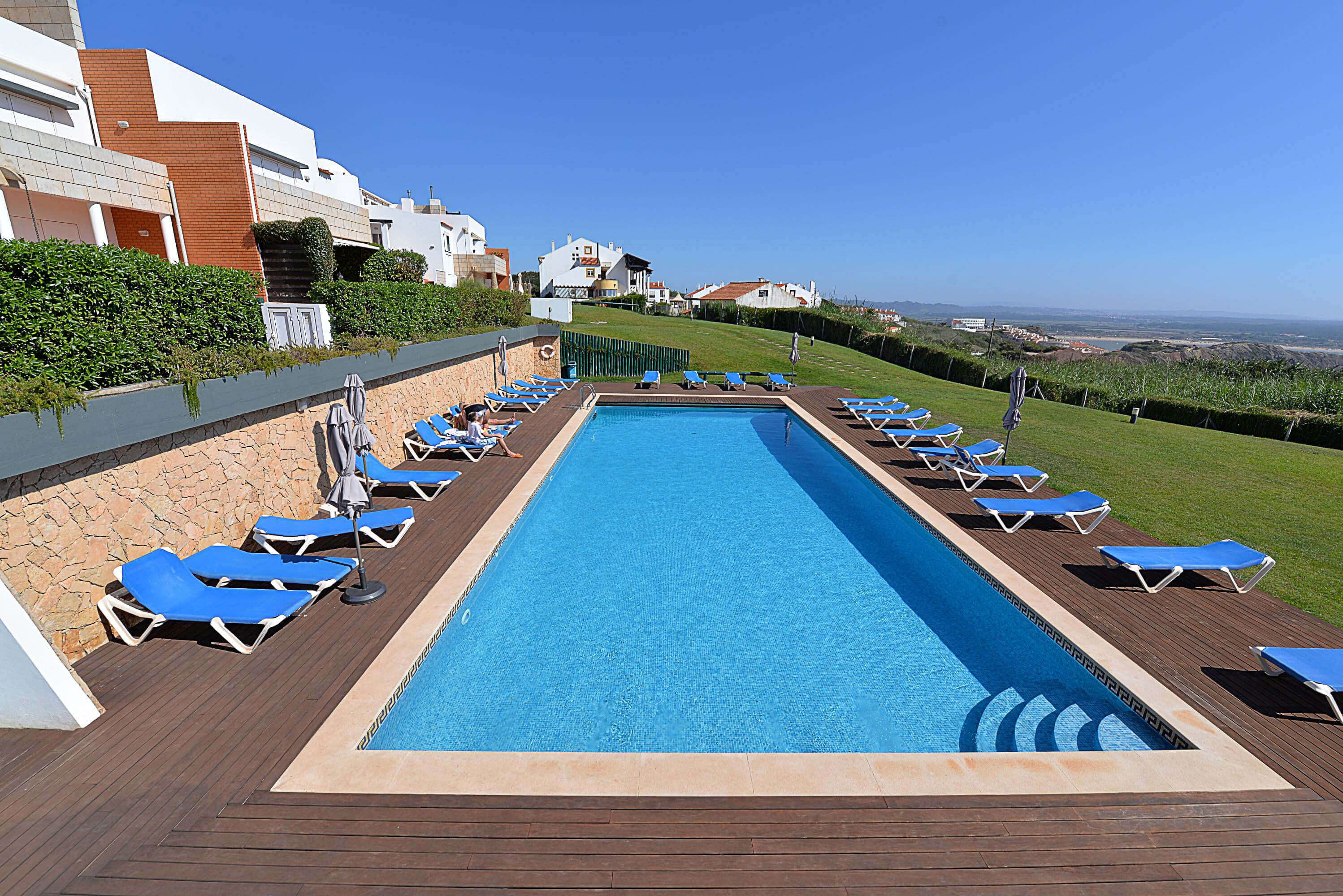 Our first visit to Portugal and we were fortunate to be spending our last week in Gilma Facho! A spacious, very complete apartment located next to the swimming pool. Two big bathrooms, a fully equiped kitchen and a very cosy living room - Just perfect! From our terrace we had a perfect view at the Atlantic Ocean. The Gilma Facho resort itself is beautiful and very well maintained. Manager Filipe was always available and very kind. In other words: super!!