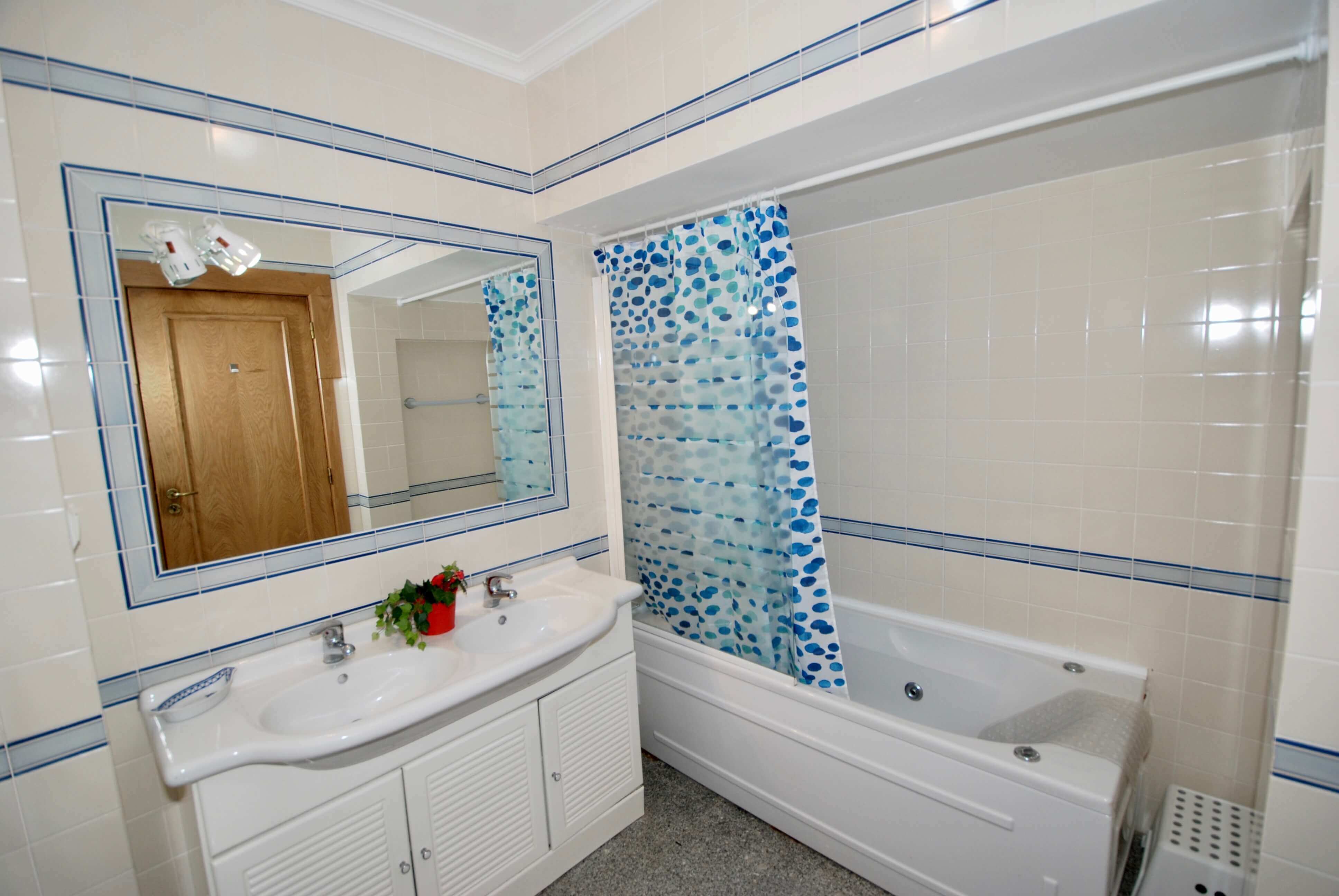 There are 2 bedrooms. The first bedroom has a double bed and the second one has twin beds and an en-suite bathroom. There is also the family bathroom with shower over bath. In the lounge you will also find a sofa-bed which allows this apartment to accommodate up to 5 guests.