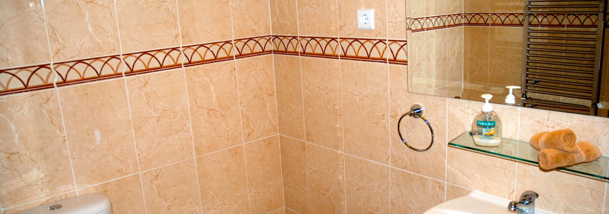 The apartment has 2 bathrooms, one full bathroom and the other has a toilet, bidet and shower enclosure.