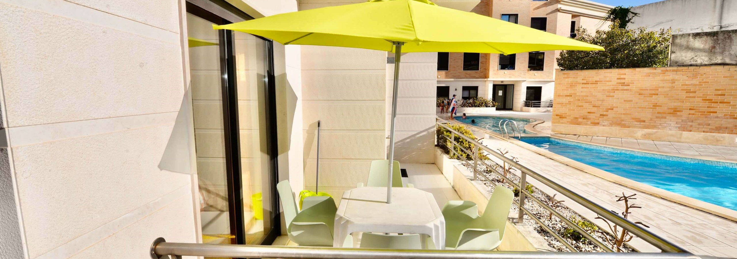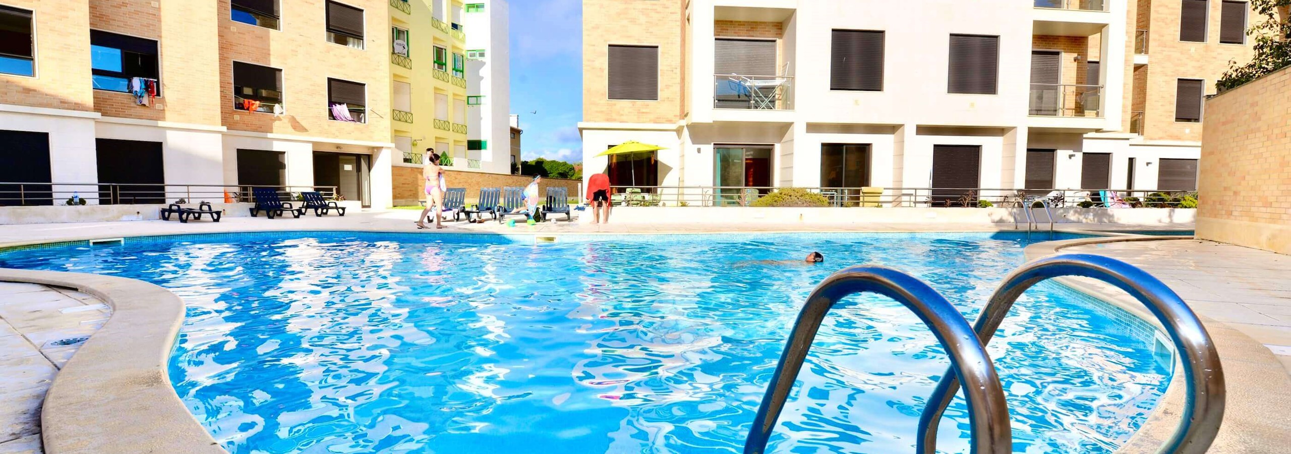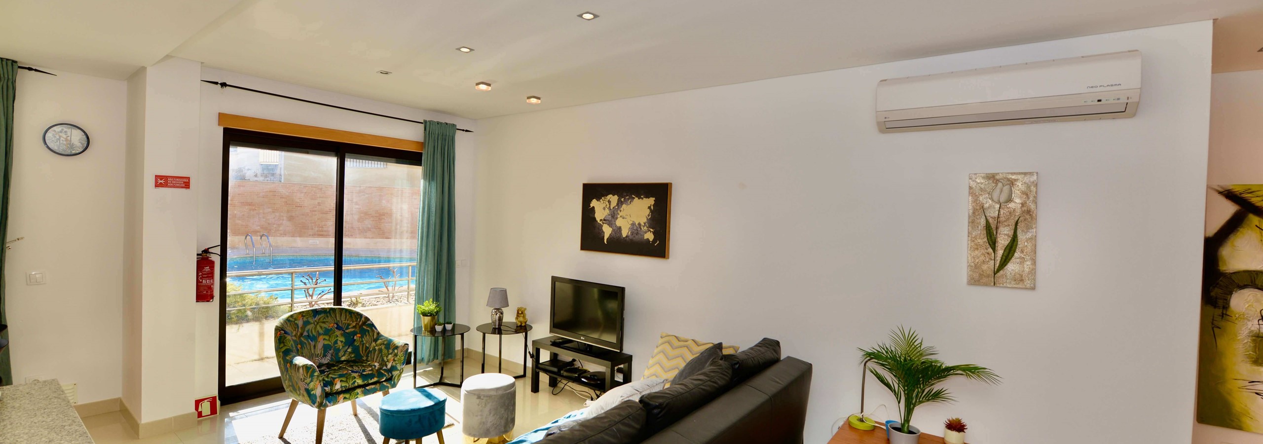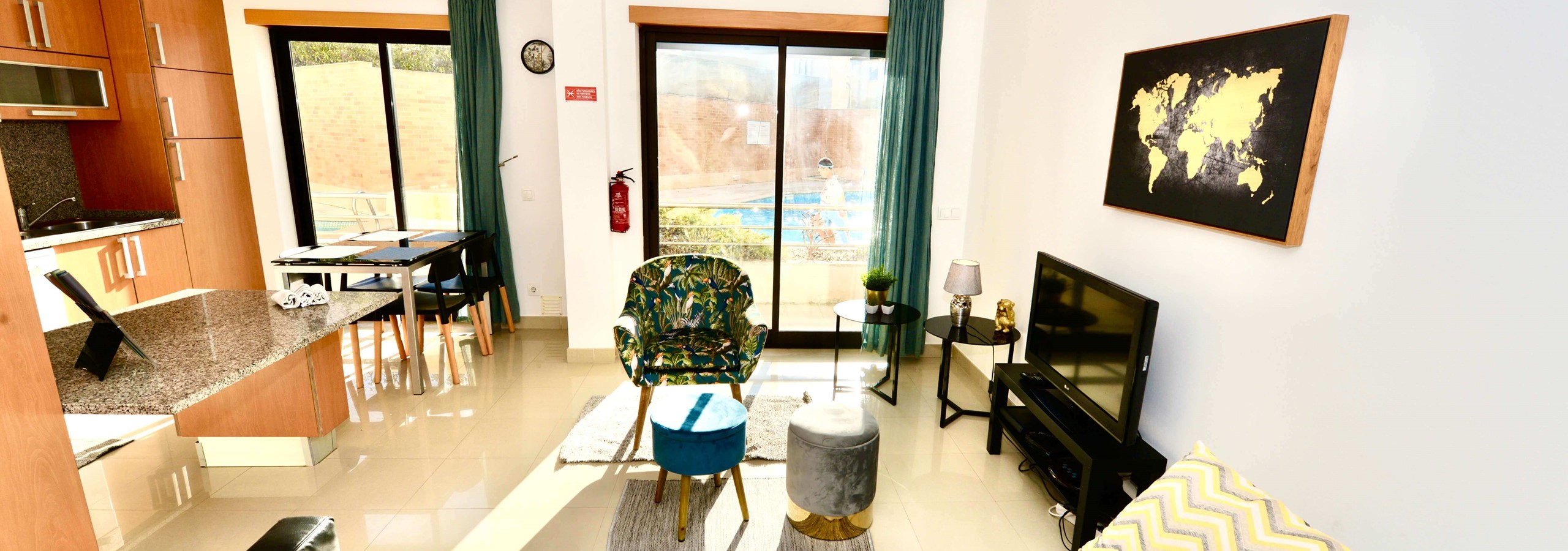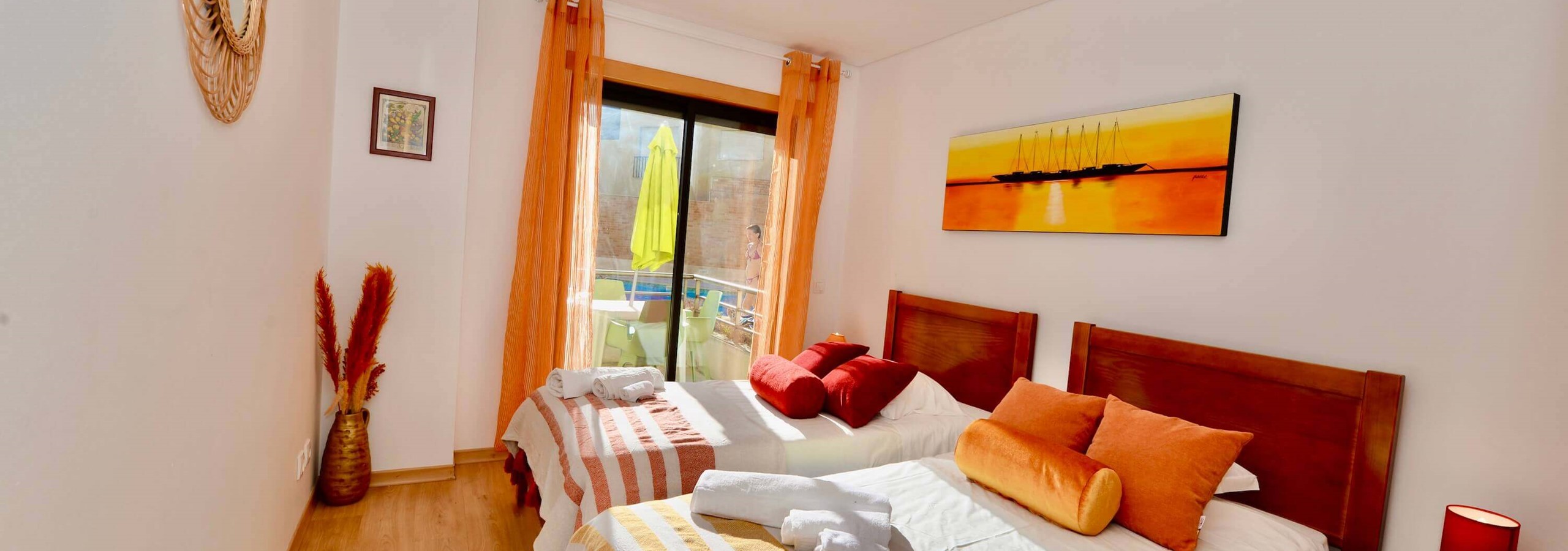 Located on the ground floor in one of São Martinho's most popular complexes, the Parque Residence, this is a 1-bedroom apartment that would be perfect for a couple or a small family. You have twin beds in the bedroom and a double sofa-bed in the lounge area. The property is located in a prime position, next to the 2 beautiful swimming pools of the complex. It couldn't be better for parents wanting to overlook their children as they swim or for guests wanting easy access to the pools.