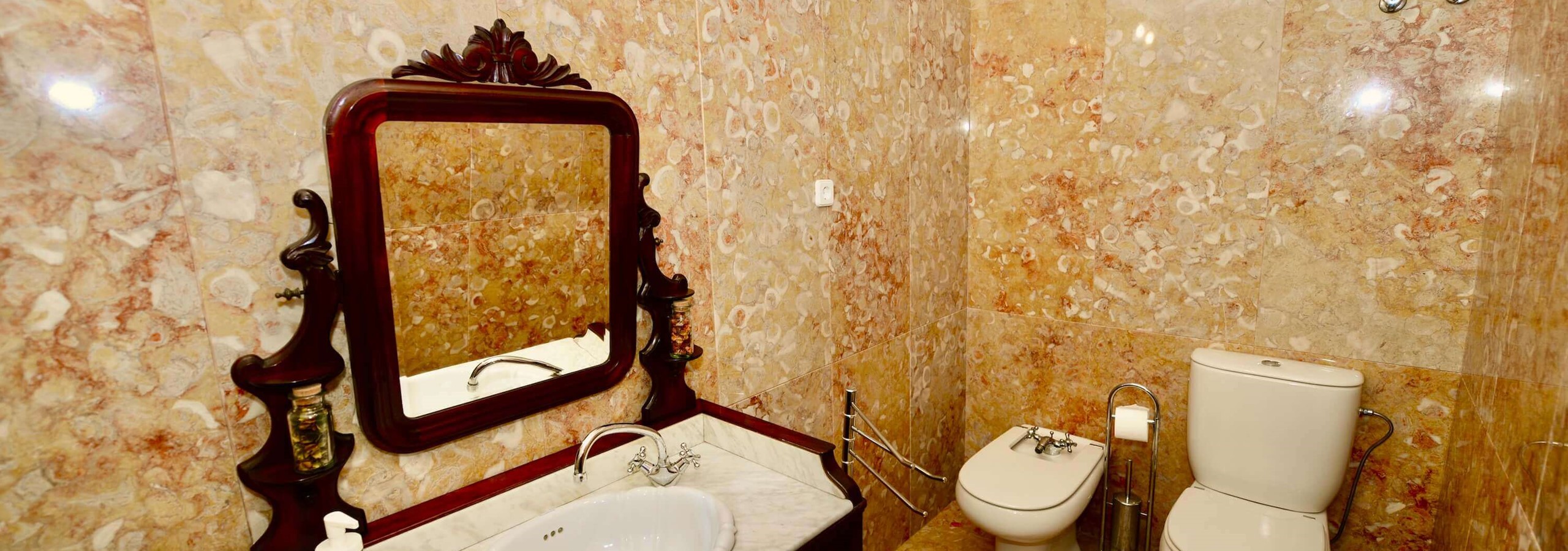 Four of the bedrooms are doubles and the fifth provides twin beds. The lounge and and the dining room have been presented with polished hard wood flooring and furnished to complement the grand nature of the accommodation. Polished marble floor tiles and marble surfaces help give the main bathroom its extravagant finish.